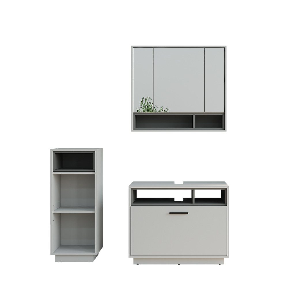 LIEFERUMFANG: Waschbeckenunterschrank, Spiegelschrank, Midischrank, Montageanleitung, Montagematerial (Dekoration nicht enthalten).#27950