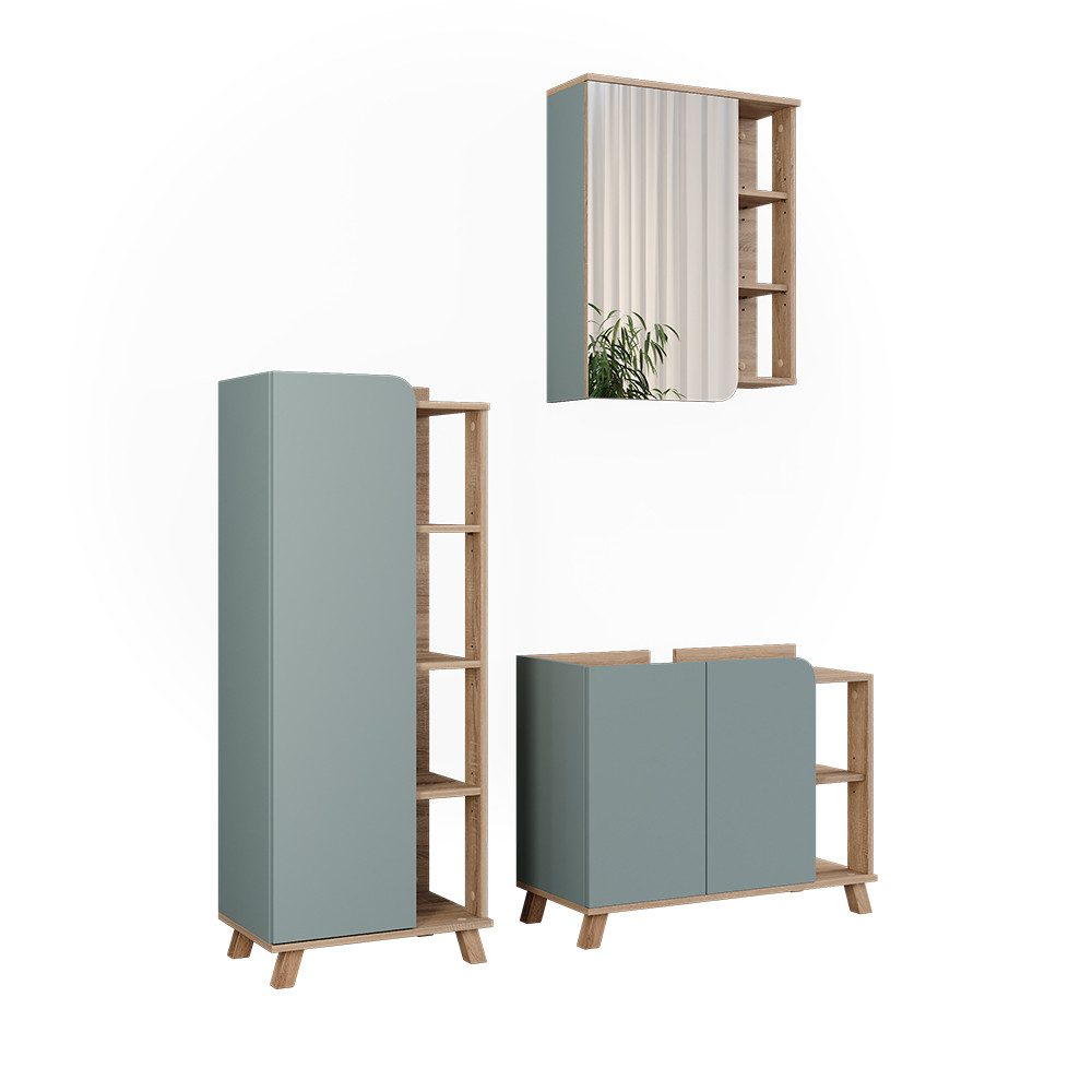 LIEFERUMFANG: Waschbeckenunterschrank, Badspiegelschrank, Badregal, Montageanleitung, Montagematerial (Dekoration nicht enthalten)#27684
