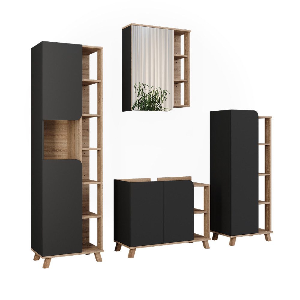 LIEFERUMFANG: Waschbeckenunterschrank, Badspiegelschrank, Badregal, Hochschrank, Montageanleitung, Montagematerial (Dekoration nicht enthalten)#27686