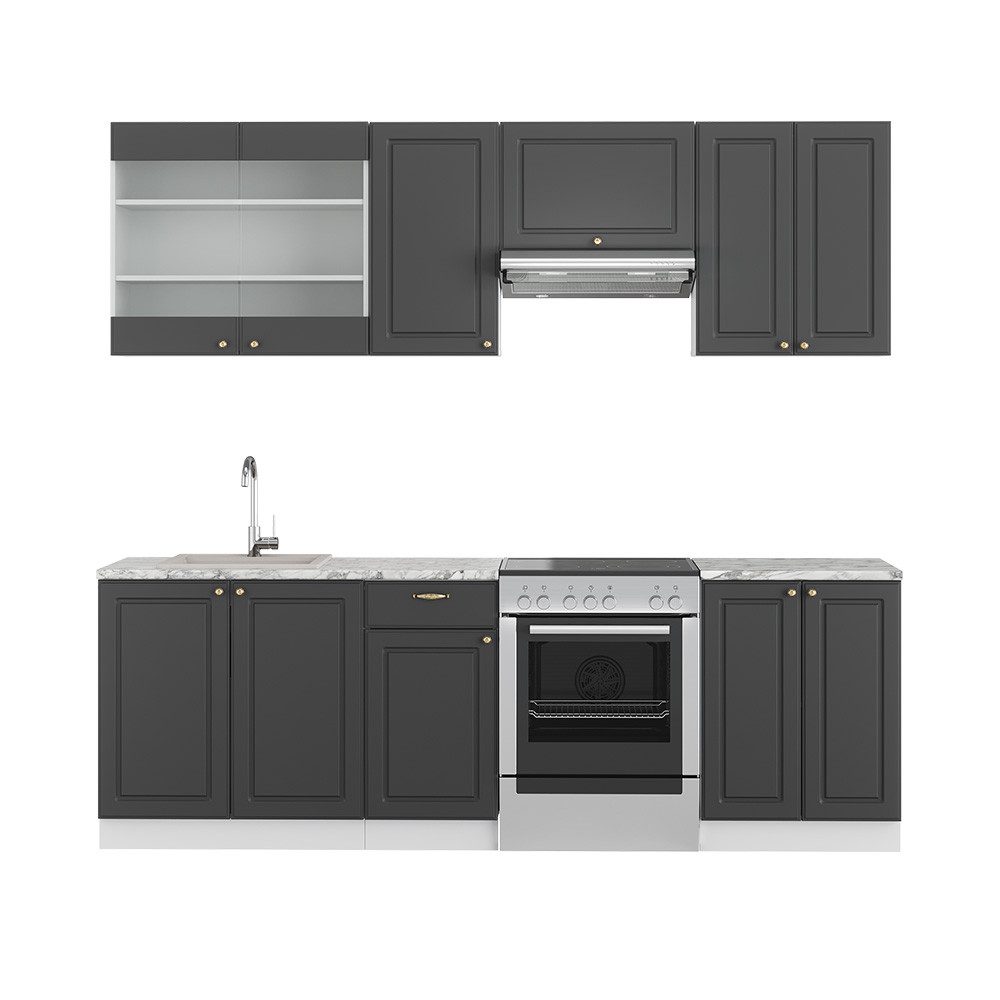 LIEFERUMFANG: Küchenblock ohne Arbeitsplatte, Montagematerial, Montageanleitung (Sofern nicht anders angegeben, gehören Elektrogeräte und Dekorationen nicht zum Lieferumfang)#5843