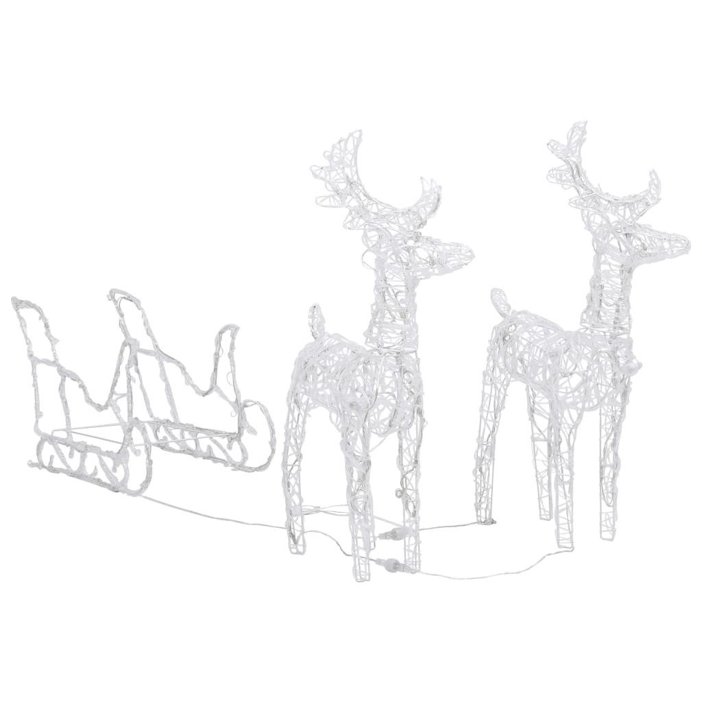 Mit diesen entzückenden, leuchtenden Rentieren mit Schlitten kannst du in der Weihnachtszeit einen schönen Anblick in deinem Garten schaffen. Wetterbeständiges Material: Aus Acryl und PVC um einen Stahlrahmen gefertigt, sind diese beleuchteten Rentiere mit Schlitten in der Weihnachtszeit wetterbeständig. Beleuchtete Weihnachtsdekoration: Sie ist mit 320 LED-Leuchten ausgestattet, die energieeffizient und langlebig sind.Verschiedene Lichteffekte: Die Weihnachtsdekoration ist mit 8 verschiedenen Lichteffekten ausgestattet: eine Kombination aus allen Effekten, langsames Glühen, Funkeln/Blinken, in der Welle, fließendes Wasser, sequentiell, kontinuierliche Beleuchtung und langsames Verblassen.