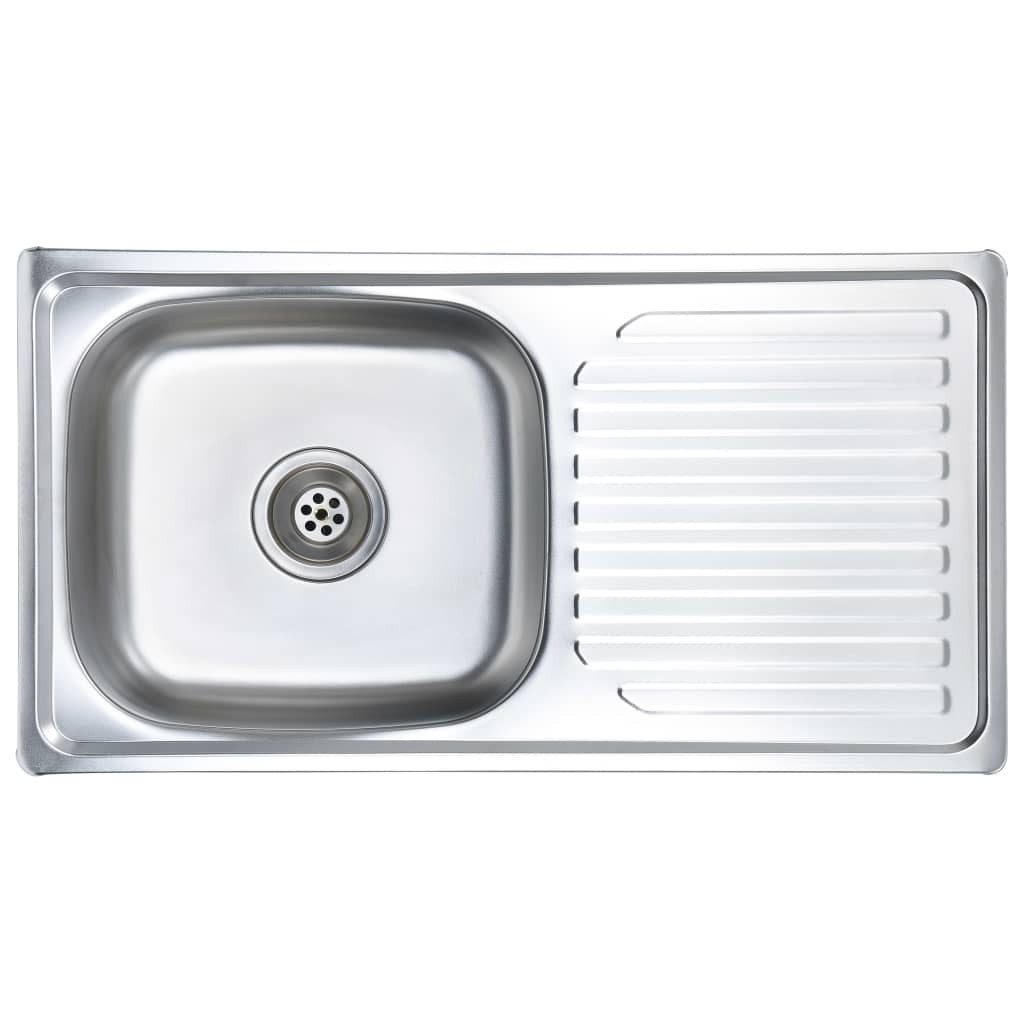 Diese hochwertige Einbauspüle hat ein großes Spülbecken mit einer verlängerten Abtropffläche an der Seite. Sie wird inklusive Sieb und Siphon geliefert und ist eine tolle Wahl für jede Küche! Die Abtropffläche erweist sich nicht nur beim Abwaschen von Hand als sehr nützlich, sondern kann auch als zusätzlicher Platz zum Schneiden von Gemüse verwendet werden. Die rechteckige Spüle kann mit der Abtropffläche entweder nach links oder nach rechts montiert werden. Diese langlebige und korrosionsbeständige Küchenspüle besteht aus hochwertigem Edelstahl mit gebürsteter Oberfläche. Die mitgelieferte schalldämmende Einlage hilft, Geräusche zu reduzieren.