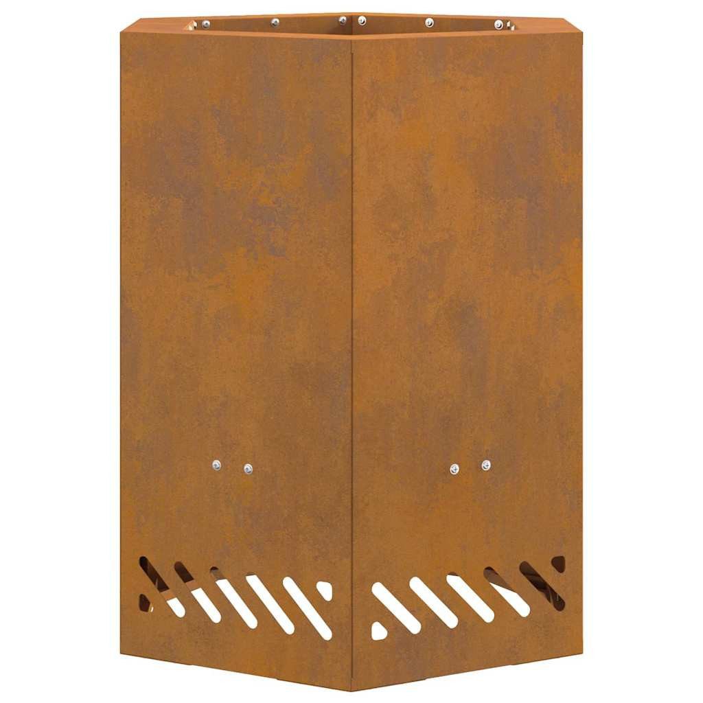 Diese moderne sechseckige Feuerstelle für draußen bringt frischen Wind in jedes Außensetup mit ihrem auffälligen, zeitgemäßen Design. Sie ist perfekt für alle, die den minimalistischen Style mögen und verbindet spielend klare Linien mit Funktionalität. Ideal für Gartenfeiern lädt sie ein, sich um das gemütliche Feuer zu versammeln und tolle Erinnerungen mit Freunden und Familie zu schaffen. Das glatte Finish und das durchdachte Design machen sie zu einem Blickfang auf jedem Balkon oder in jedem Garten und versprechen viel Eleganz neben der praktischen Nutzung.