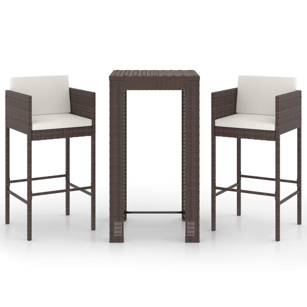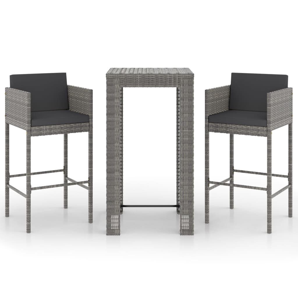 Aus witterungsbeständigem und wasserdichtem PE-Rattan gefertigt, ist dieses Gartenbar-Set pflegeleicht, strapazierfähig und alltagstauglich. Das pulverbeschichtete Stahlgestell macht den Tisch und die Hocker robust und langlebig. Die Tischplatte bietet den idealen Platz für Getränke, Speisen oder einige Dekoartikel. Die Fußstütze und die Kissen der Hocker sorgen für zusätzlichen Sitzkomfort. Dank ihrer Leichtbauweise lassen sich alle Artikel einfach umstellen.