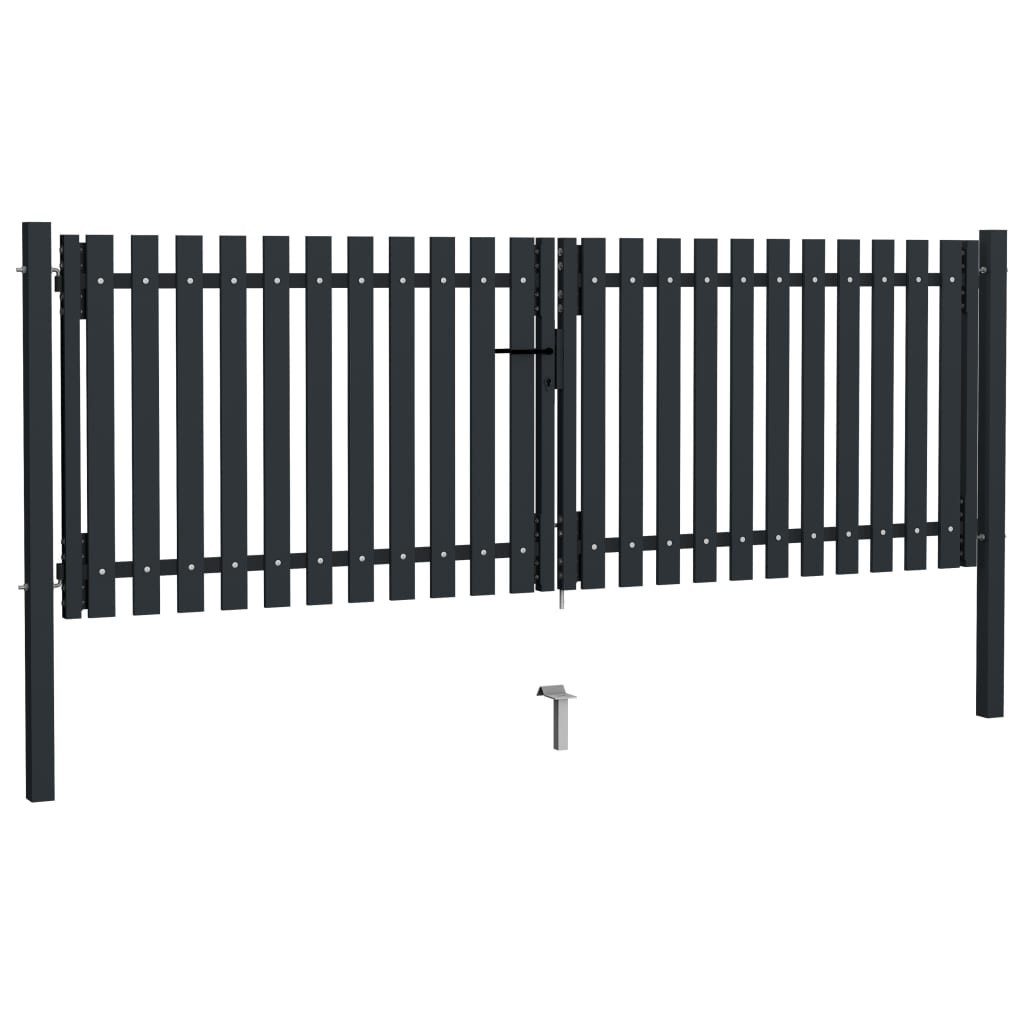 Dieses Doppelflügel-Zauntor bietet einen zeitgemäß gestalteten Eingang, um Ihren Garten vor der Außenwelt zu verbergen. Dieses Tor besteht aus pulverbeschichtetem Stahl und ist daher äußerst robust. Dieses Gartentor mit einem Schloss, einem Griff und einem Erdungsstift bietet ein hohes Maß an Sicherheit und Komfort.