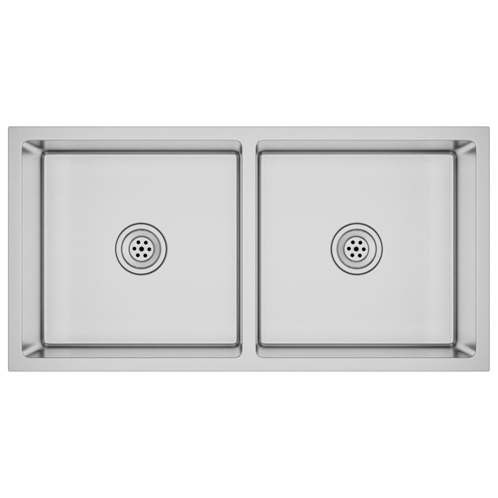 Genießen Sie die Vorteile dieser erstklassigen Einbauspüle mit schlichtem, zeitgenössischem Design. Die zwei Becken mit seidig glattem Satin-Finish überzeugen durch ihre Eleganz und Raffinesse und passen zu jeder Kücheneinrichtung! Dieses Spülbecken vereint das Beste aus Funktion und Design und besteht aus hochwertigem, massivem Edelstahl, der gegen Kondensation behandelt wurde. Es ist daher schimmelresistent, bleifrei und korrosionsbeständig. Dank der Pads zur Schalldämmung ist es auch schallisoliert. Darüber hinaus ermöglicht das Becken mit einzigartigem Wasserabfluss in X-Form einen schnellen Wasserfluss und verhindert so, das Wasser im Becken verbleibt. Das Spülbecken kann je nach Ihrem Belieben als Unterbau, Unterputz und Einbau montiert werden.