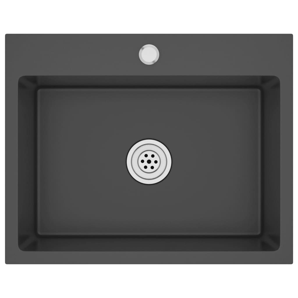 Die Einbauspüle ist nicht nur optisch ansprechend, sondern auch äußerst robust und langlebig. Der schwarze Edelstahl ist kratzfest und bleibt auch nach jahrelangem Gebrauch in einem einwandfreien Zustand.