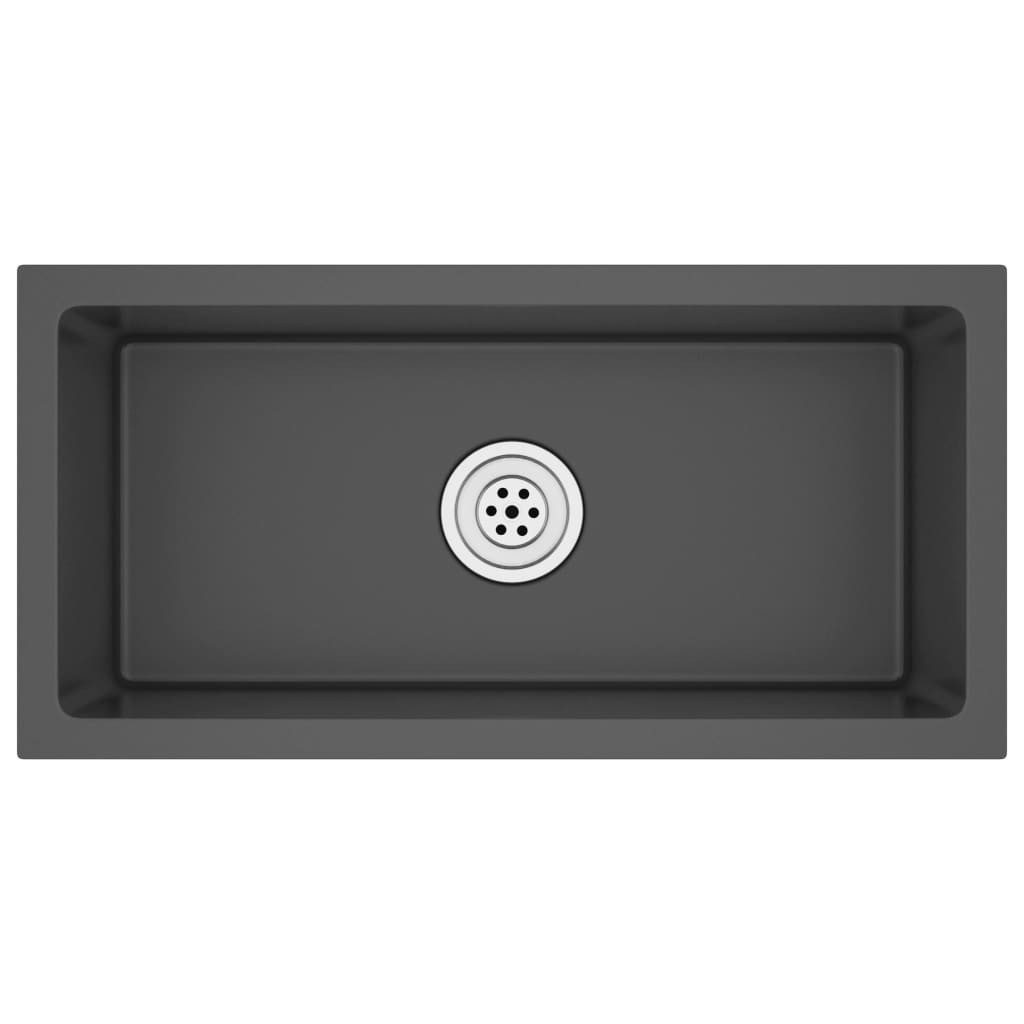 Die Einbauspüle ist aus schwarzem Edelstahl gefertigt und überzeugt durch ihre robuste Verarbeitung. Sie ist langlebig und widerstandsfähig gegenüber Kratzern und Flecken.