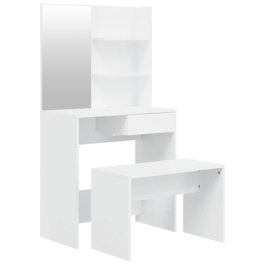 Der Schminktisch bietet reichlich Platz, um Make-up, Schmuck und Schönheitsprodukte griffbereit aufzubewahren.Spiegel: Mit einem Spiegel versehen, eignet sich der Schminktisch perfekt für deine tägliche Schönheitspflege. So kannst du deine Gesichtshaut pflegen und auch dein Make-up auftragen!Vielseitig einsetzbar: Dieses Schminktisch-Set eignet sich für verschiedene Bereiche, sei es Schlafzimmer, Ankleide oder jeden anderen Raum, in dem du es aufstellen möchtest.