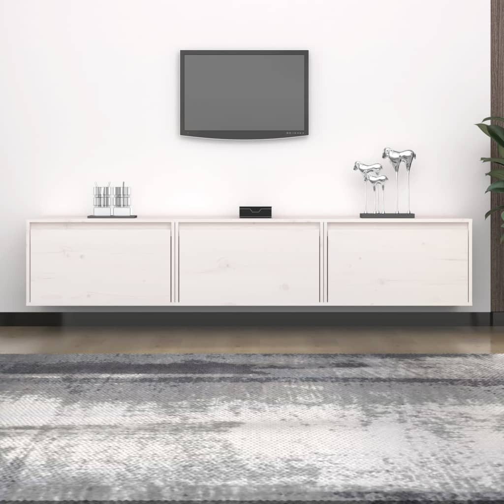 Diese klassischen TV-Schränke werden mit ihrem trendigen und dennoch praktischen Design ein echter Blickfang in Ihrem Wohnzimmer sein. Aus massivem Kiefernholz gefertigt, sind die Hängeschränke robust, stabil und auf eine lange Lebensdauer ausgelegt. Die Wandschränke bieten auch den idealen Platz für Sachen wie Bücher, Sammlerstücke, Ornamente und mehr. Sie verwandeln eine leere Wand sofort in ein Designelement. Darüber hinaus lassen sich die Schwebeschränke mit einem feucht Tuch leicht reinigen. Bitte beachten: Schrauben und Dübel für die Befestigung an der Wand sind nicht im Lieferumfang enthalten. Suchen und verwenden Sie Schrauben und Dübel, die für Ihre Wände geeignet sind. Im Zweifelsfall holen Sie professionelle Beratung ein. Lesen und befolgen Sie jeden Schritt der Anweisungen sorgfältig.