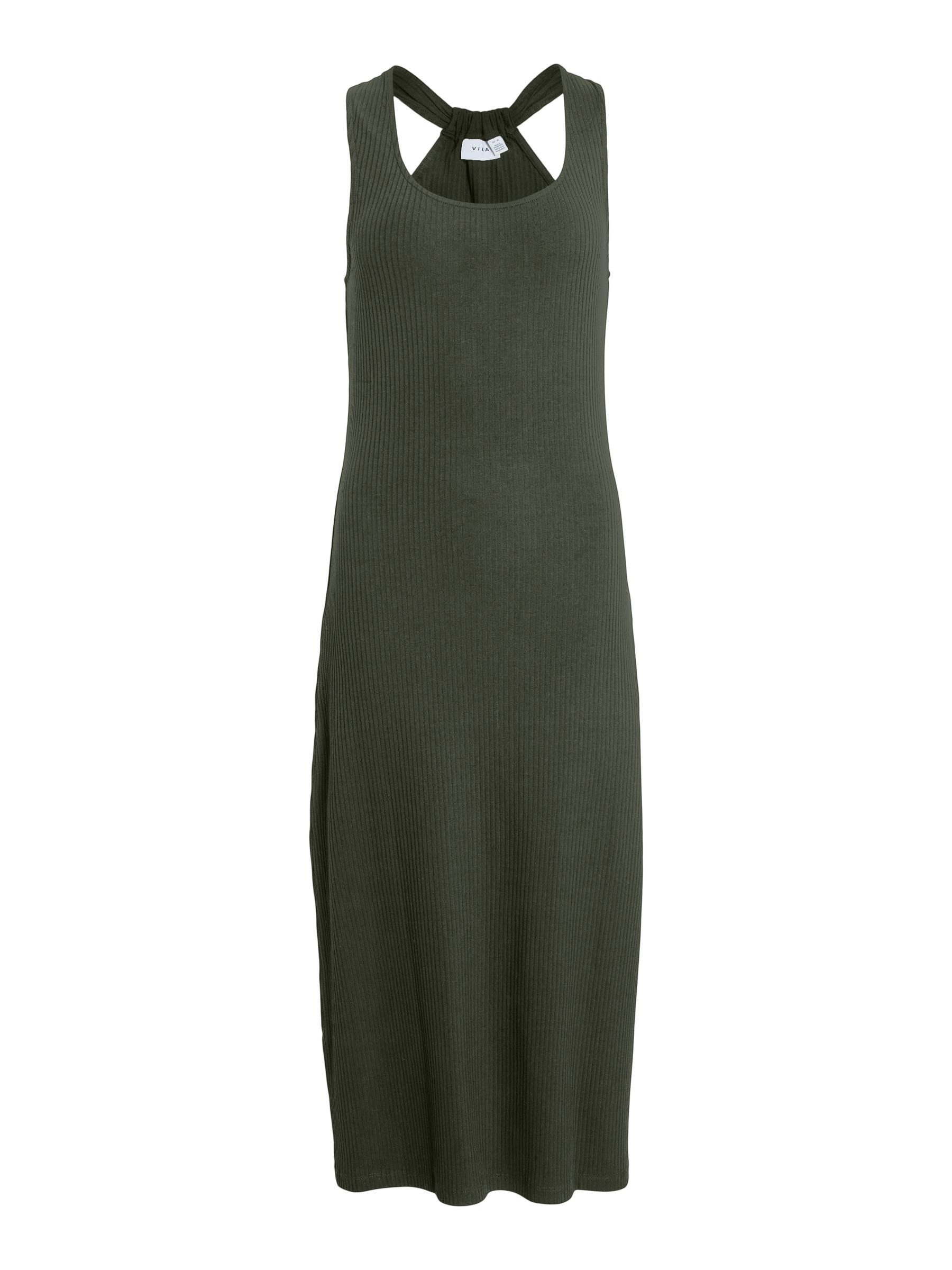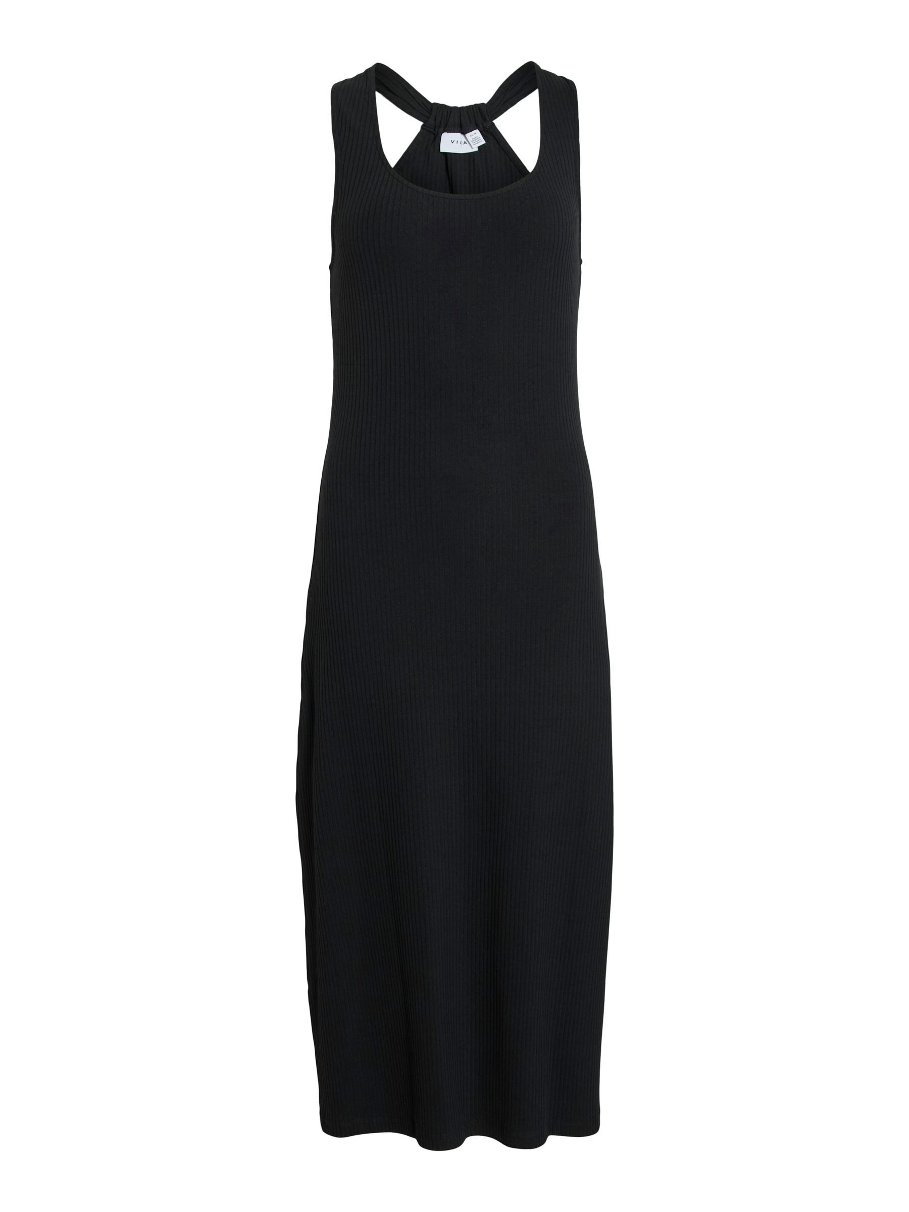 Dieses ärmellose Maxikleid besticht durch sein minimalistisches Design und die feine Rippenstruktur.