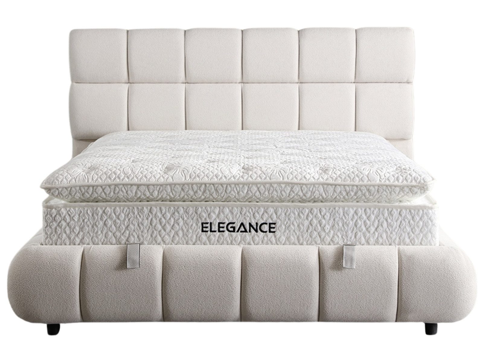 Das Elegance Plus Bett-Set überzeugt mit einem edlen Design, das Eleganz und Funktionalität perfekt vereint. Die gepolsterte Rückenlehne mit moderner Karo-Optik schafft eine stilvolle Atmosphäre, während die integrierte Stauraumfunktion zusätzlichen Platz für Decken oder Kissen bietet. Die hochwertige Elegance Plus Matratze sorgt mit Taschenfederkern, CNC-Schaum und Hyper-Kapitone-Schwamm für einen erholsamen Schlaf und optimalen Komfort. Dank abnehmbarem Pedli-Topper wird das Liegegefühl noch weicher und ergonomischer. Die Materialkombination aus gewebtem Stoff, Silikonfaser und Schaumlagen garantiert Langlebigkeit und ein gesundes Schlafklima. Dieses Set ist die perfekte Wahl für alle, die Qualität, Design und Funktion schätzen.