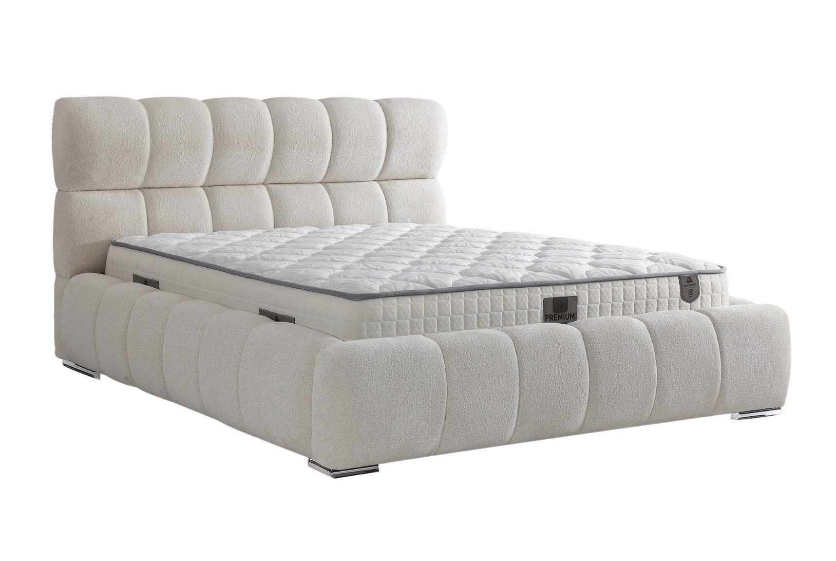 Das Premium Bett mit Bettkasten in Fendi 01-02 Creme bietet luxuriösen Komfort und ein außergewöhnliches Design. Das weich gepolsterte, aufwendig gesteppte Kopfteil verleiht dem Bett eine stilvolle und moderne Optik. Die großzügige Federkernmatratze mit Pillow-Top passt sich optimal an den Körper an und sorgt für einen tiefen, erholsamen Schlaf. Der integrierte Bettkasten bietet viel Stauraum für Bettwäsche, Kissen oder saisonale Textilien und lässt sich dank eines leichtgängigen Öffnungssystems mühelos bedienen. Der hochwertige Fendi 01-02 Stoff in Creme ist besonders weich, pflegeleicht und langlebig. Das Premium Bett mit Bettkasten ist in verschiedenen Größen, Matratzenarten und Kopfteilvarianten erhältlich – die perfekte Wahl für alle, die auf maximalen Komfort und edles Design setzen.