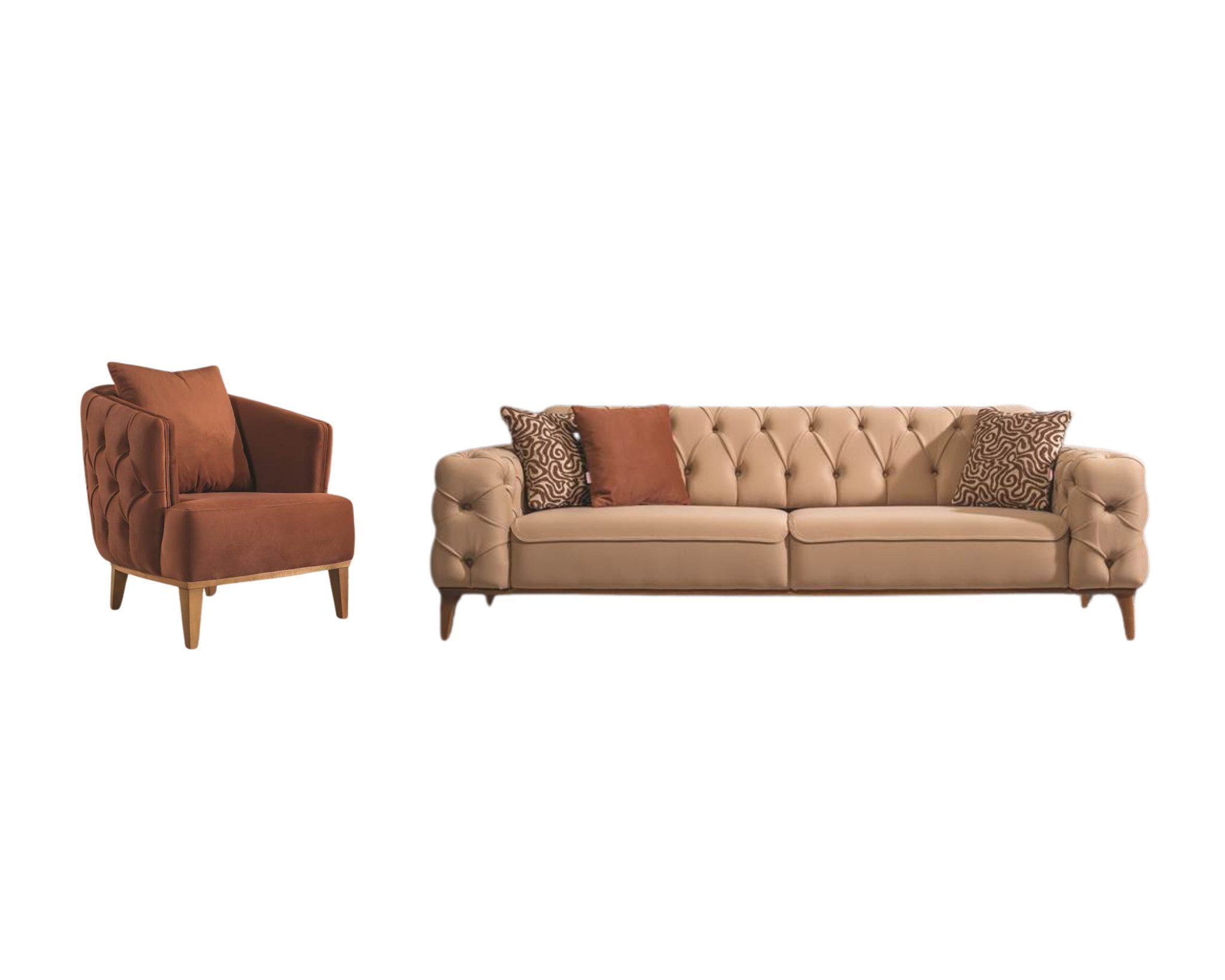 Das Lila Sofa-Set vereint edles Design mit wohnlicher Gemütlichkeit. Der hochwertige Samtstoff sorgt für eine angenehm weiche Haptik und bringt dezente Eleganz in jeden Raum. Die sorgfältig gearbeiteten Füße aus Naturholz unterstreichen den warmen, klassischen Look und sorgen zugleich für Stabilität.