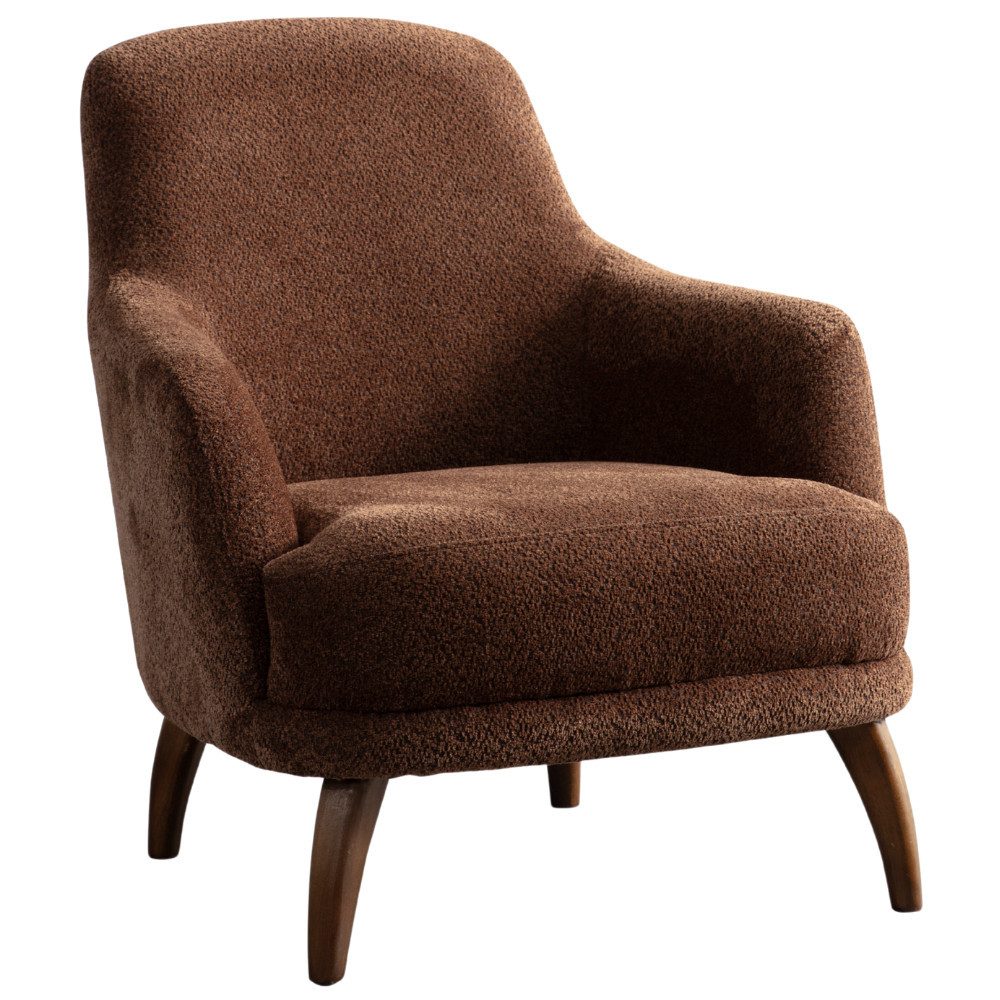 Almond Sessel – Weicher Bouclé-Stoff & natürliche Holzfüße