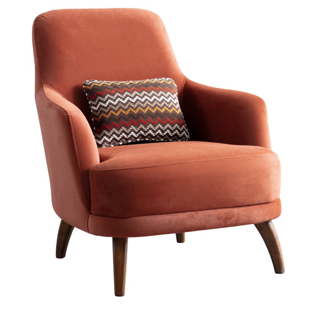 Der Almond Sessel begeistert mit seinem samtig-weichen Bouclé-Stoff in Terracotta, Braun oder Grün, der eine warme und gemütliche Atmosphäre schafft. Die klaren Linien und die stabilen Holzfüße in Natur runden das Design harmonisch ab.