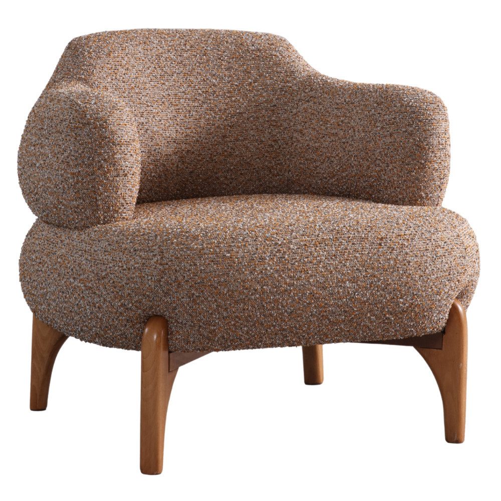 Der Bueno Sessel überzeugt mit seinem angenehmen Mikrofaser Webstoff in Braun, der ein behagliches Sitzgefühl bietet. Die klaren Linien und die stabilen Holzfüße in Natur verleihen dem Sessel eine natürliche und einladende Ausstrahlung.