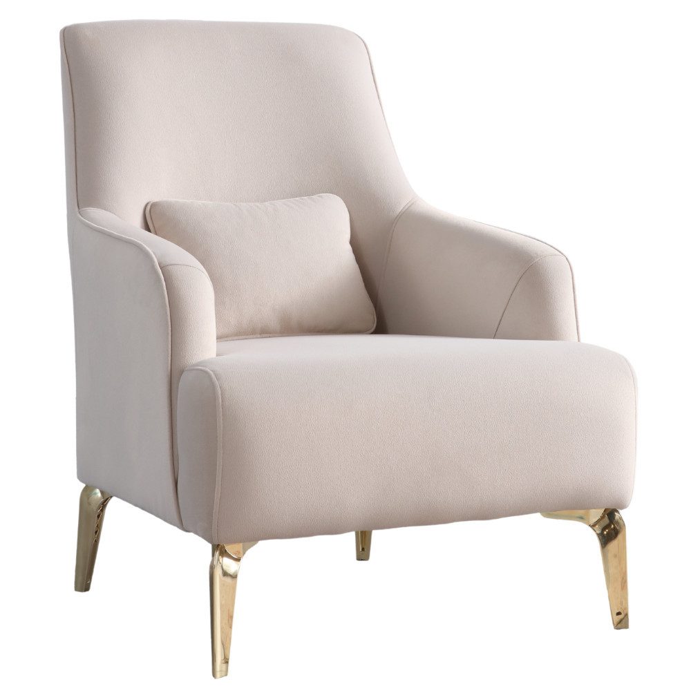 Der Majesty Sessel besticht durch seinen weichen Mikrofaser Webstoff in Beige und die glänzenden Kunststofffüße in Gold. Die großzügige Polsterung und das elegante Design machen ihn zum perfekten Sitzmöbel für anspruchsvolle Wohnräume.