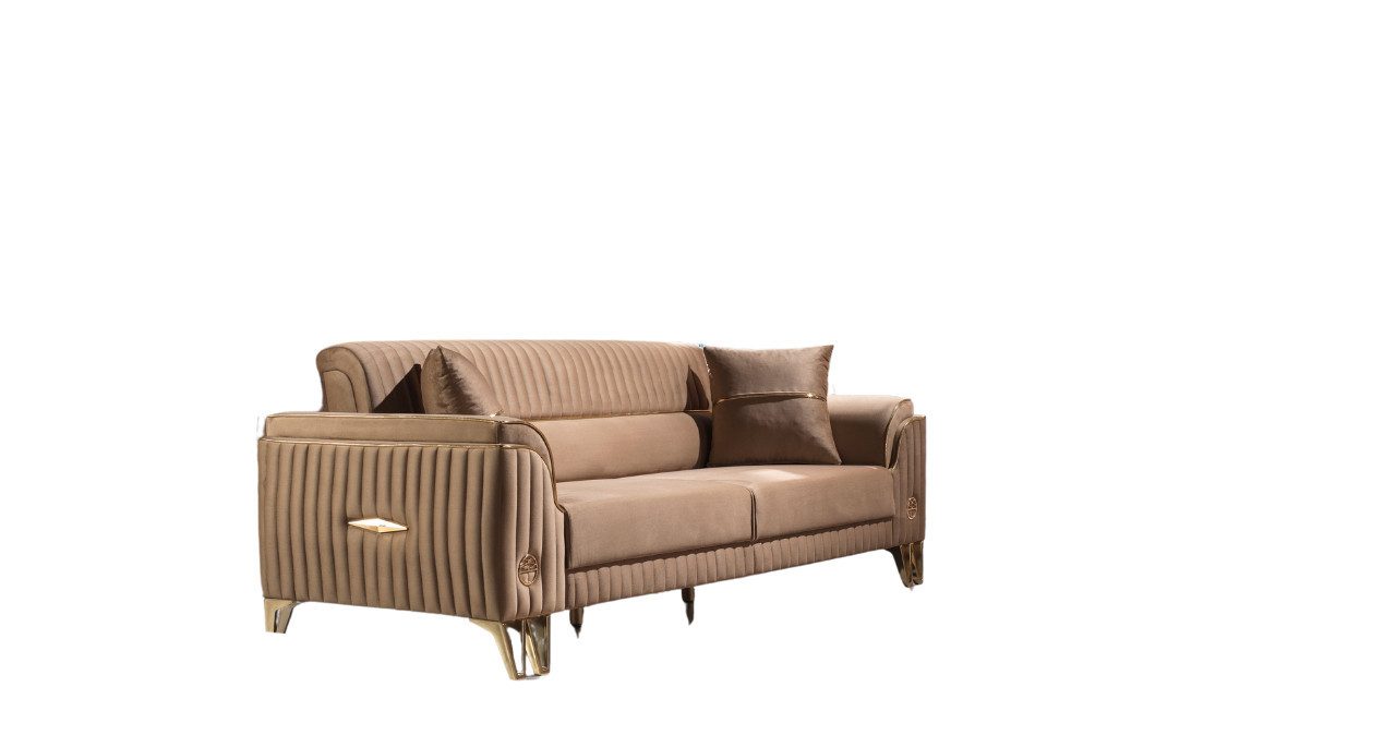 Das Flavia Sofa besteht aus hochwertigem Stoff, erhältlich in den stilvollen Farben Beige und Braun, die ein weiches und angenehmes Sitzgefühl bieten. Die stabilen Kunststofffüße in Goldoptik verleihen dem Sofa einen zeitgemäßen und edlen Touch, der in jedem Raum zum Blickfang wird. Diese hochwertigen Materialien garantieren, dass das Flavia Sofa nicht nur schön aussieht, sondern auch äußerst langlebig ist.