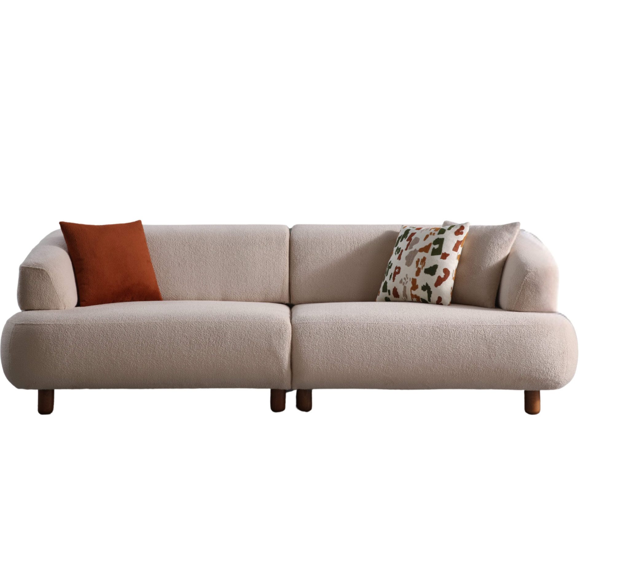 Thron Sofa – Strukturierter Bouclé & weiße Holzfüße