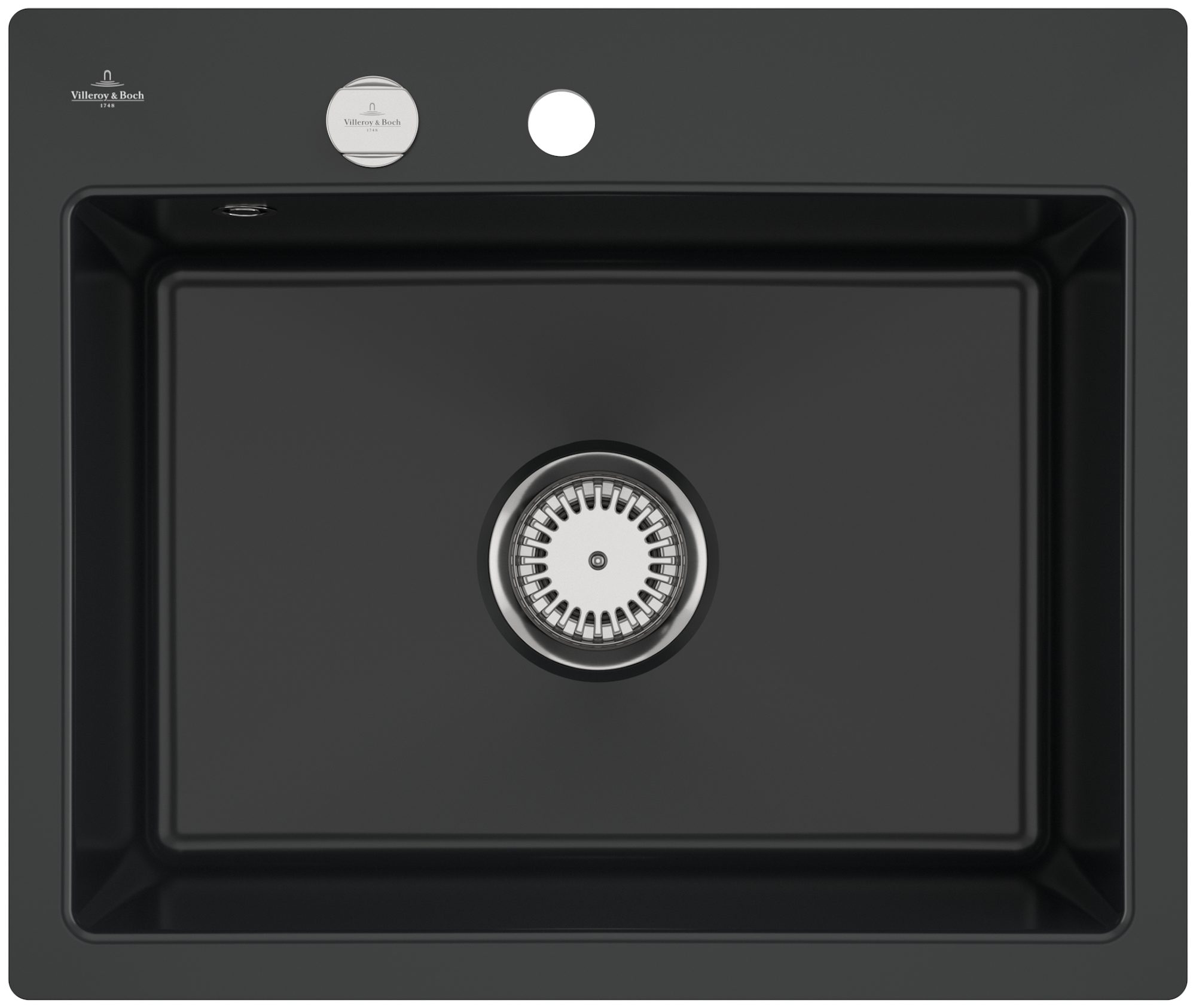 Subway 60 S Flat -eine flächenbündige Keramikspüle in Pure Black mit funktionaler Excenterbetätigung. Klare Linien, elegantes Design und mittig platziertes Becken zeichnen dieses Modell aus.