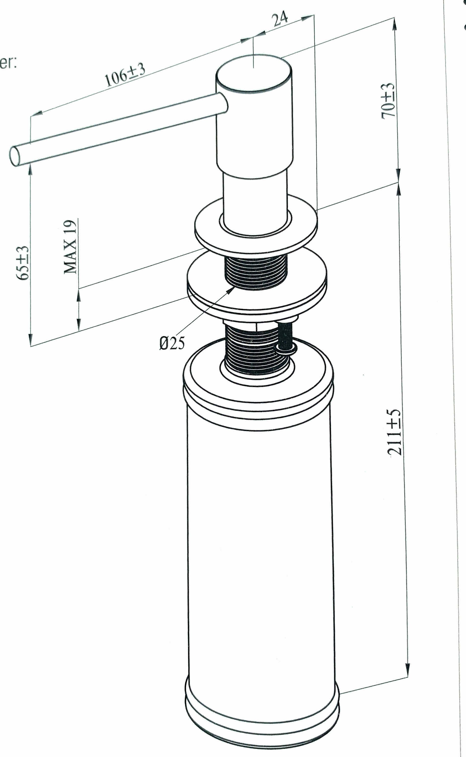 Der Seifenspender besteht aus hochwertigem Edelstahl (Kopf) und Kunststoff (Behälter) mit einer Füllmenge von 250 ml.