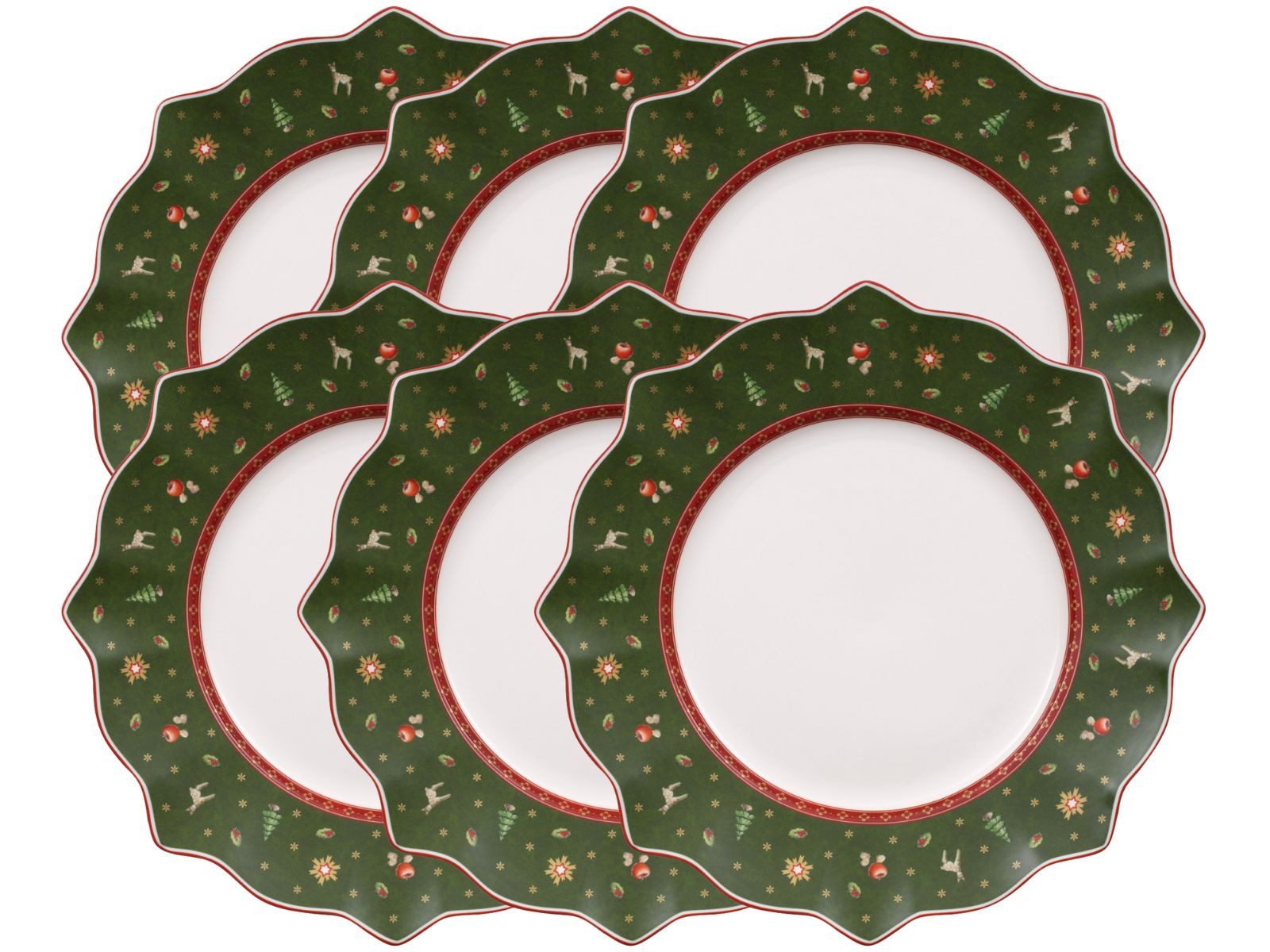 Von dem grünen Speiseteller 29 cm aus der Serie Toy\'s Delight schmecken die liebevoll festlich zubereiteten Speisen zur Advents- und Weihnachtszeit gleich noch viel besser. Auf der gedeckten Tafel kommt der Porzellanteller sehr schön zur Geltung.