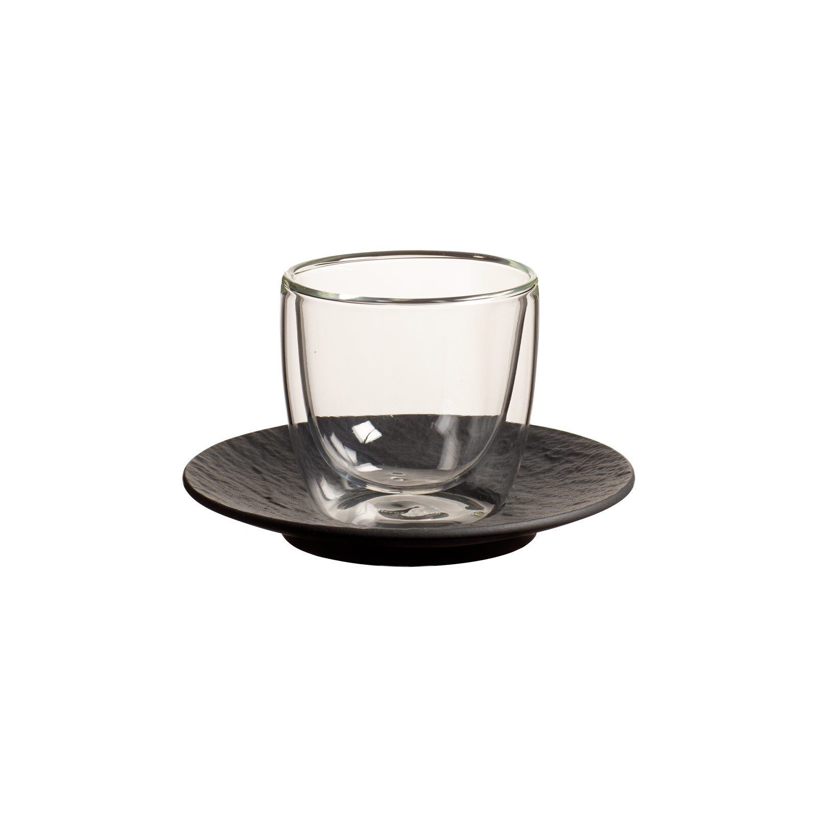 Die ursprünglich designte Geschirr-Serie Manufacture Rock ist mit handwerklichem Stil und strukturierter, matter Oberfläche in Schiefer-Optik ein großartiges haptisches Erlebnis. Bereits seit 1748 entstehen bei Villeroy & Boch Porzellan-Trends erster Güte. Funktionaler, doppelwandiger Manufacture Rock Becher passt zu jeder Situation und hält Ihr Lieblings-Heißgetränk länger warm. Gefertigt aus robustem Borosilikatglas. Spannend kombinierbar innerhalb der gesamten Manufacture-Reihe. In diesem Set gibt es den doppelwandigen Espressobecher mit der schwarzen Espresso- und Mokka-Untertasse, um einen farblichen Akzent zum Becher zu setzen. Für alle, die keine Lust auf langweiligen Espresso haben. Mit dieser Espresso- und Mokka-Untertasse setzen Sie ein ausdrucksstarkes Statement nach dem Festmahl oder zwischendurch. Erfreuen Sie sich an charaktervollem Design.Schaffen Sie ganz besondere Genussmomente mit dem Geschirr von Villeroy & Boch. Das Set ist selbstverständlich für Spülmaschine und Mikrowelle geeignet.