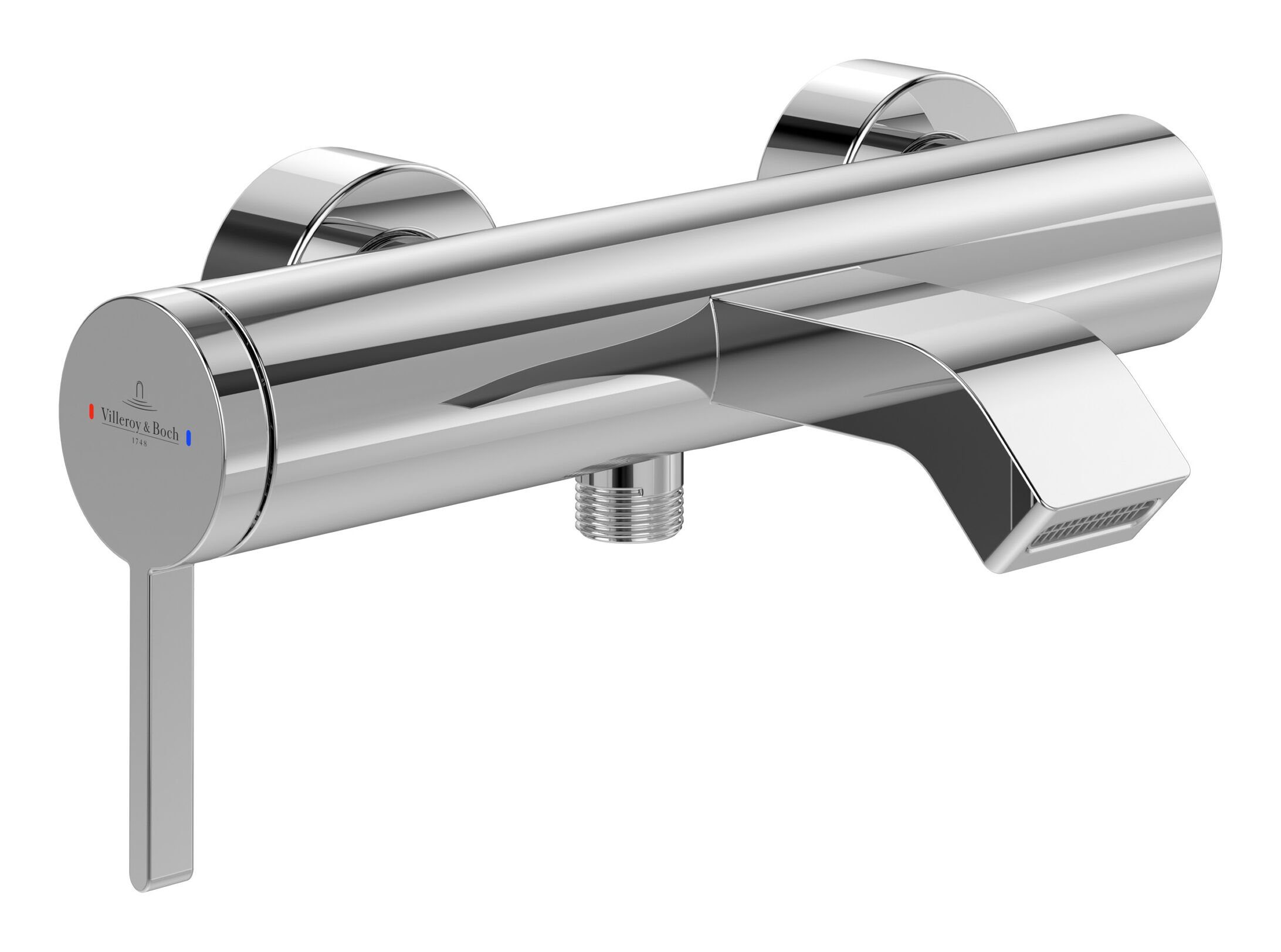 Villeroy & Boch Dawn Einhebel-Badewannenarmatur, gebogener Auslauf, mit Umsteller, Wandmontage - Chrom
