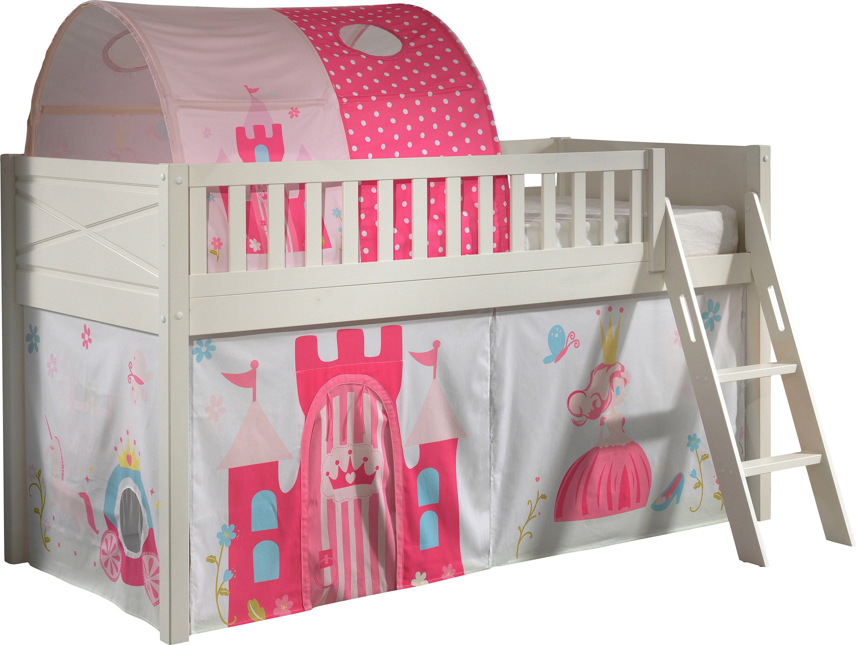 Dieses Hochbett »Scott« von Vipack inklusive Tunnel ist ein Ort zum Spielen und Träumen. Das Bett bietet 1 Schlafplätze. Das Bett ist mit einem Rollrost ausgestattet. Das Hochbett ist 114 cm hoch , hat ein weißes Gestell und wird von eckigen Füßen getragen. Mit 72,5 cm Bodenfreiheit kann die Fläche unterhalb des Bettes einfach gewischt oder gesaugt werden.