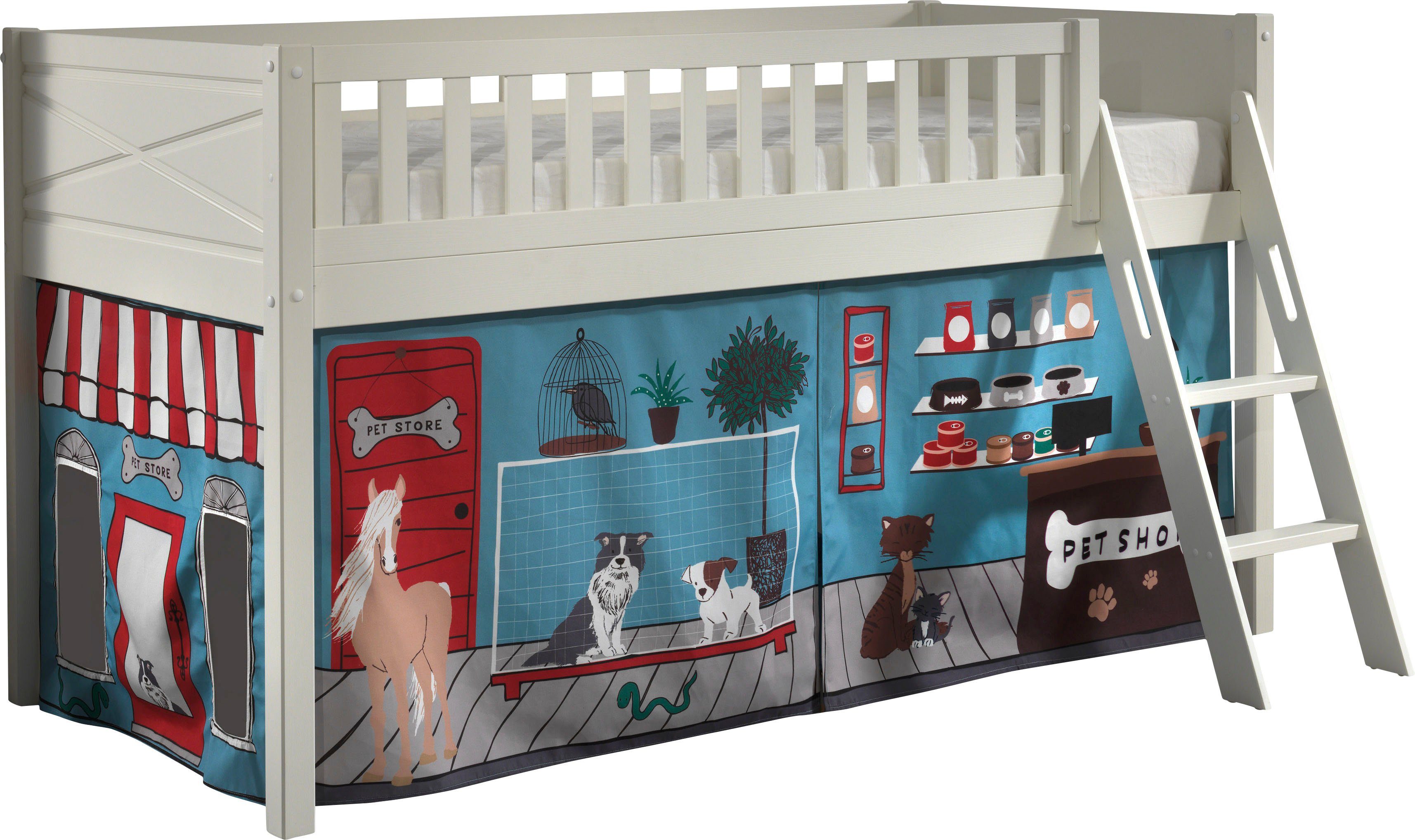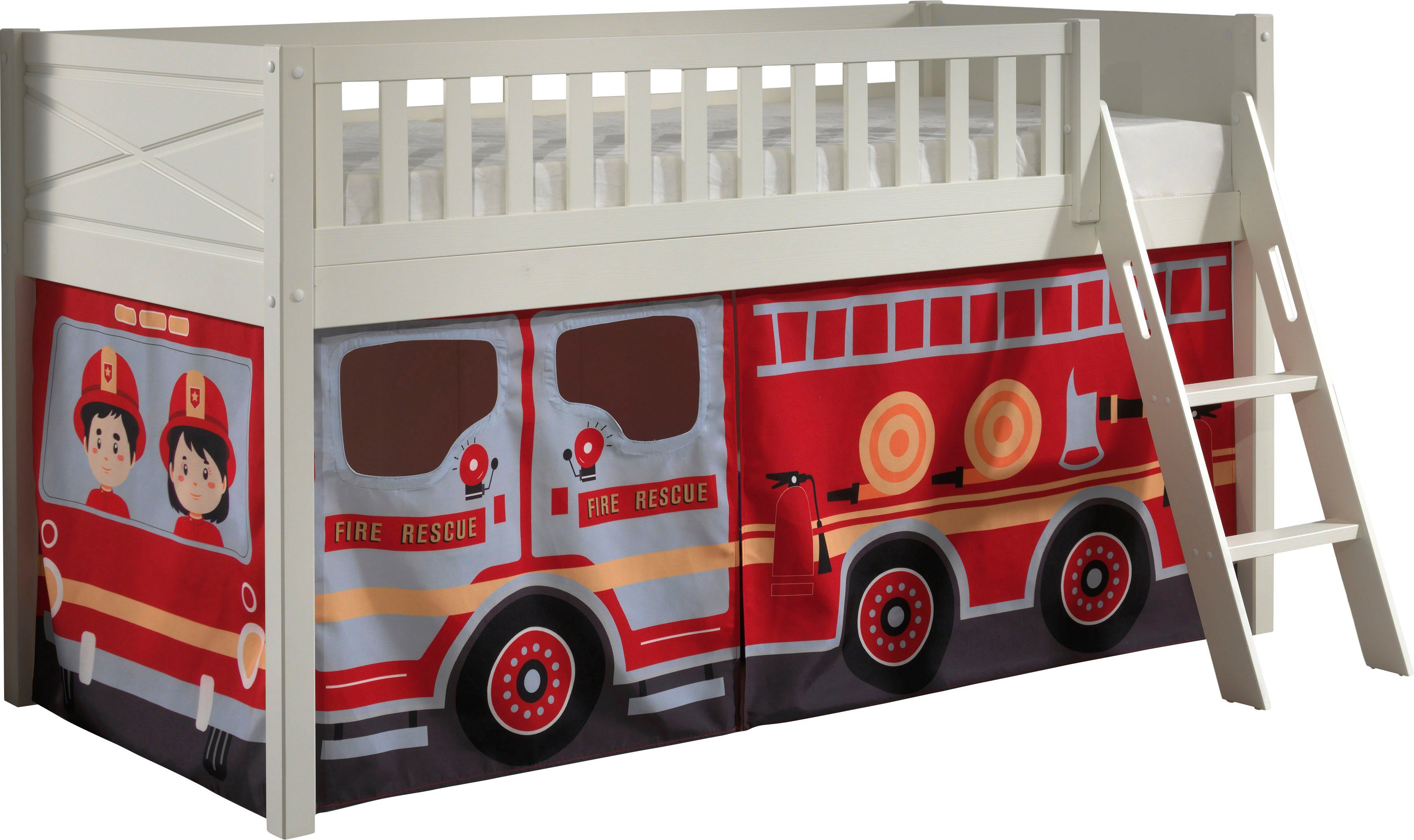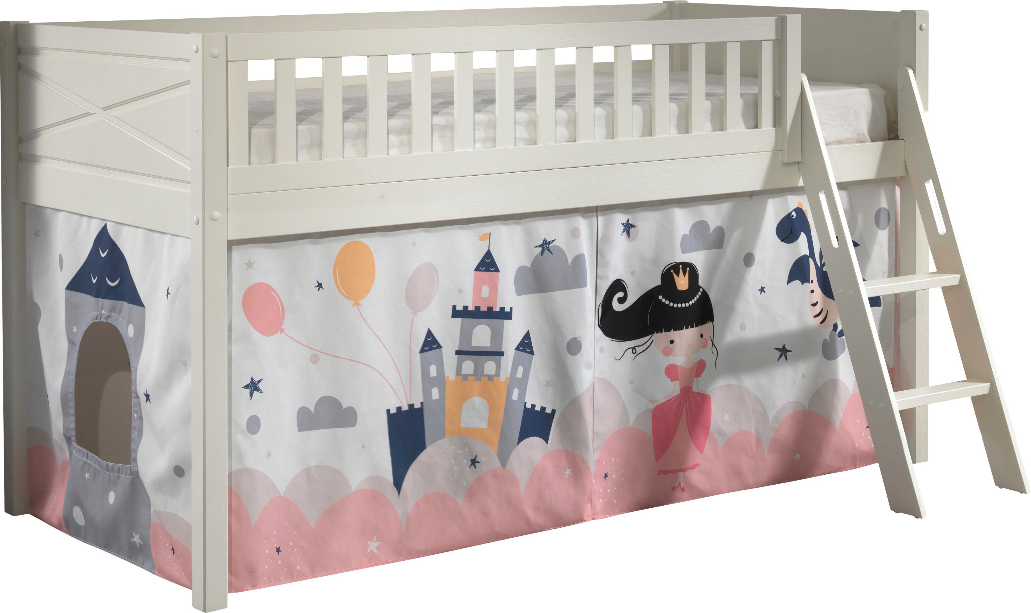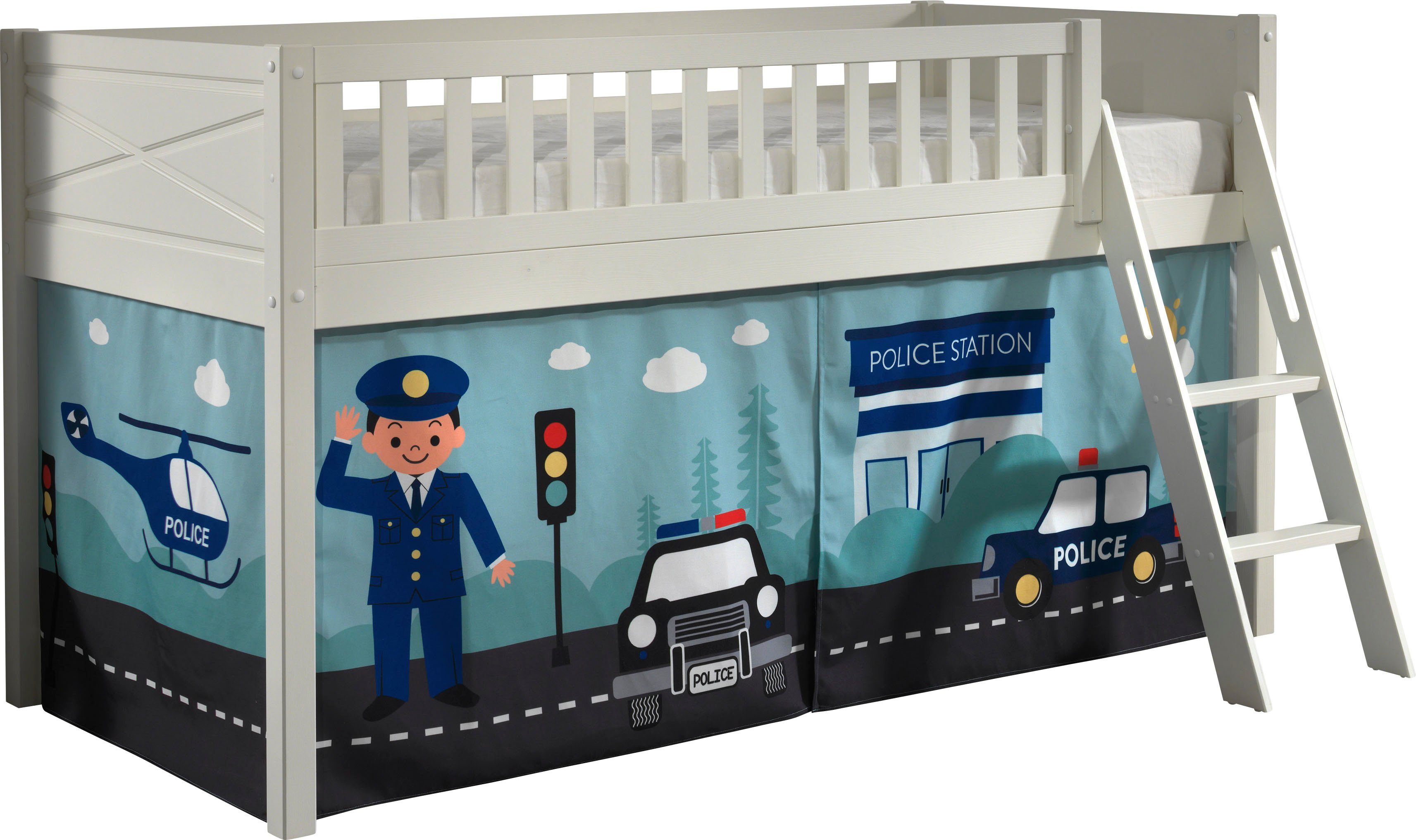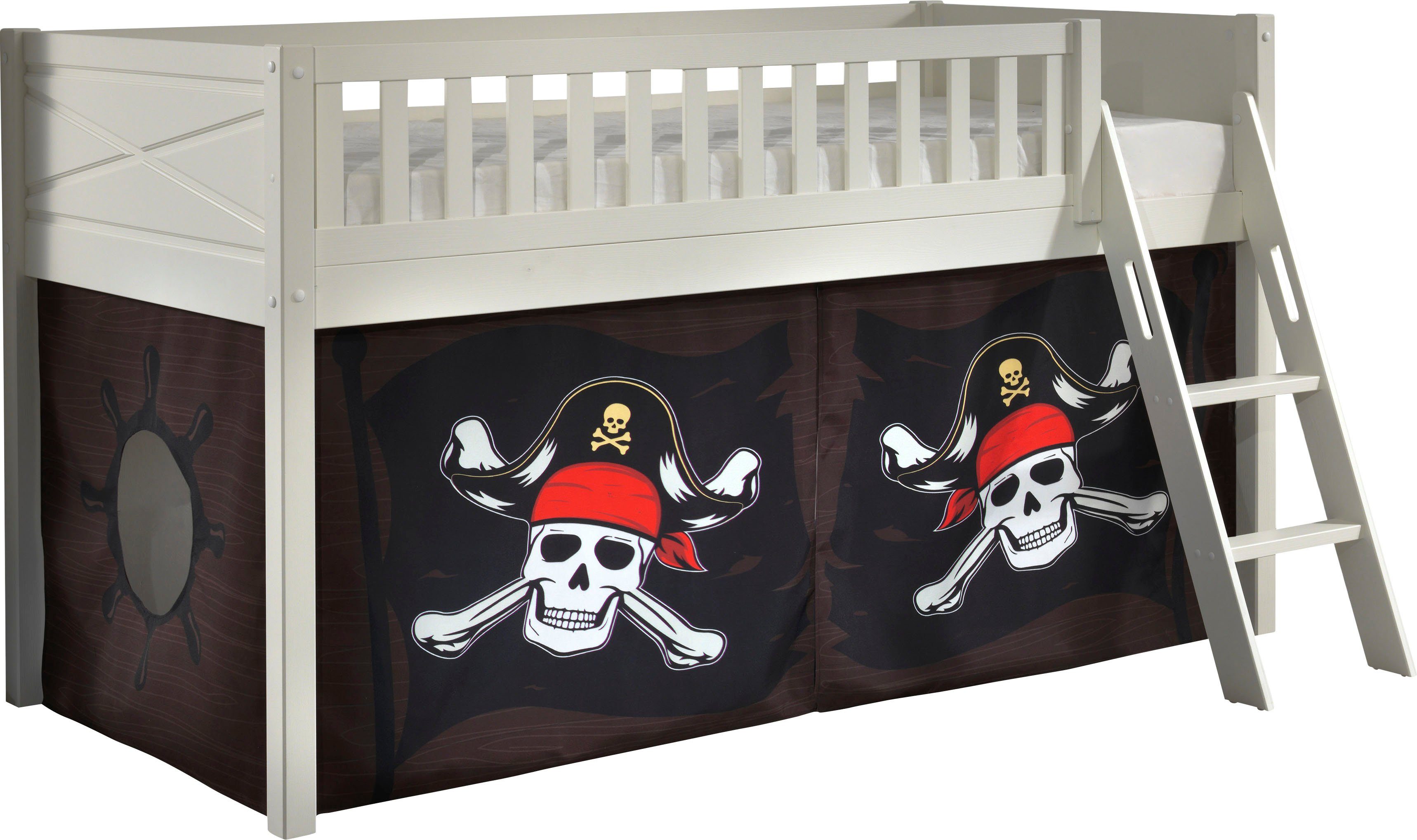 Das Maximum aus kleineren Kinderzimmern rausholen oder einfach um Platz einzusparen: Dieses Hochbett »Scott« von Vipack inklusive Trittleiter sorgt für strahlende Kinderaugen und einen erholsamen Schlaf. Das Bett verfügt über 1 Liegeflächen. Das Bett ist mit einem Rollrost ausgestattet. Das Hochbett ist 114 cm hoch , hat ein weißes Gestell und wird von eckigen Füßen getragen. Mit einer Rahmenhöhe von 72,5 cm lässt sich der Platz unterhalb der Liegefläche als Stauraum nutzen. In Körben oder Aufbewahrungskisten können Kleidung, Spielsachen oder Bettzeug aufbewahrt werden.