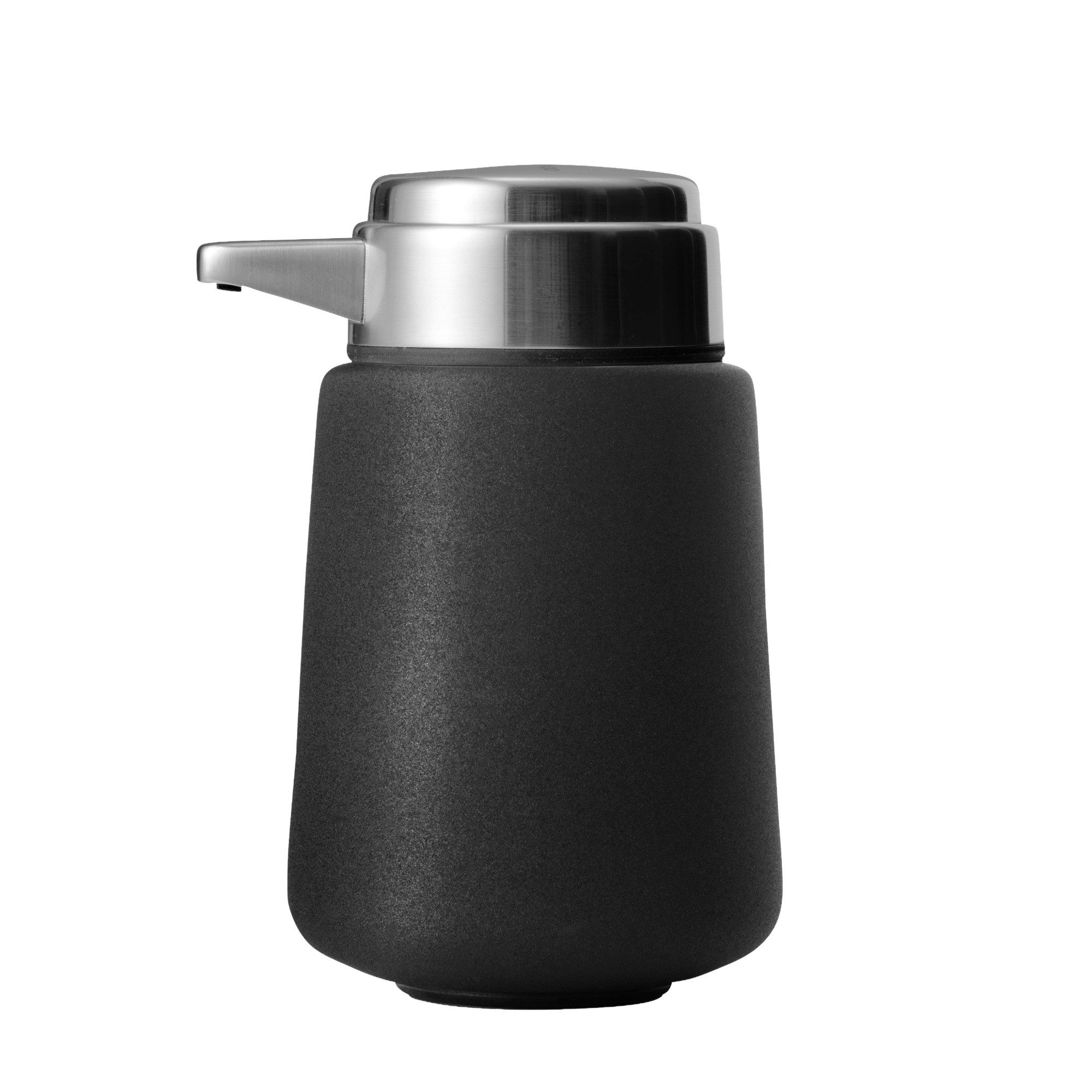 Eine individuell entwickelte Pumpe gibt exakt dosierte Mengen an Seife, Desinfektionsmittel oder Spülmittel aus – hygienisch und sparsam. Das massive Gehäuse sorgt bei der Standversion für Stabilität, während die Wandhalterung mit Verriegelung einen sicheren Halt bietet. So gelingt die Bedienung bequem mit nur einer Hand.