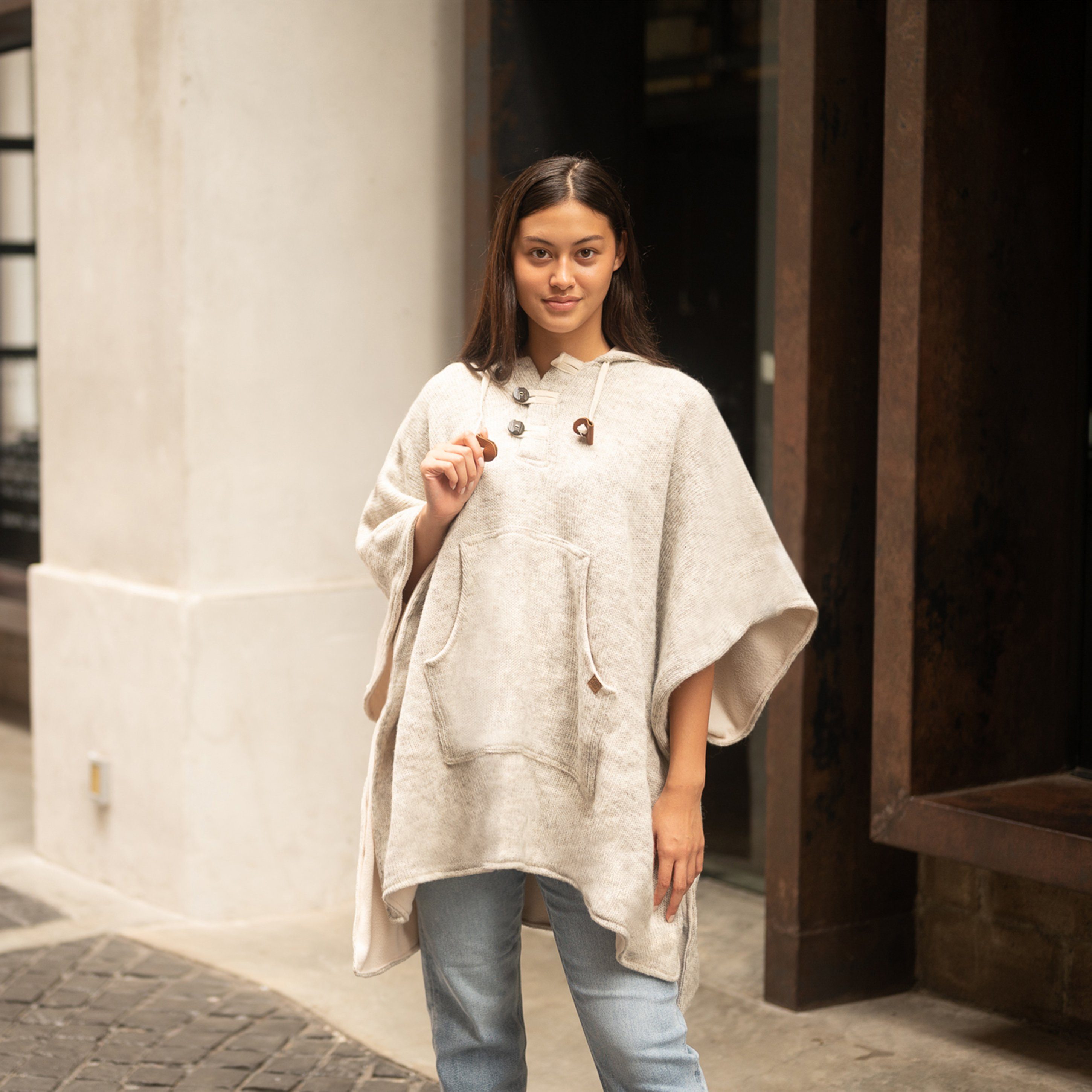 Unisex Poncho Wolle Herren und Poncho Wolle Damen mit Fleece Fütterung Abajo Wolle