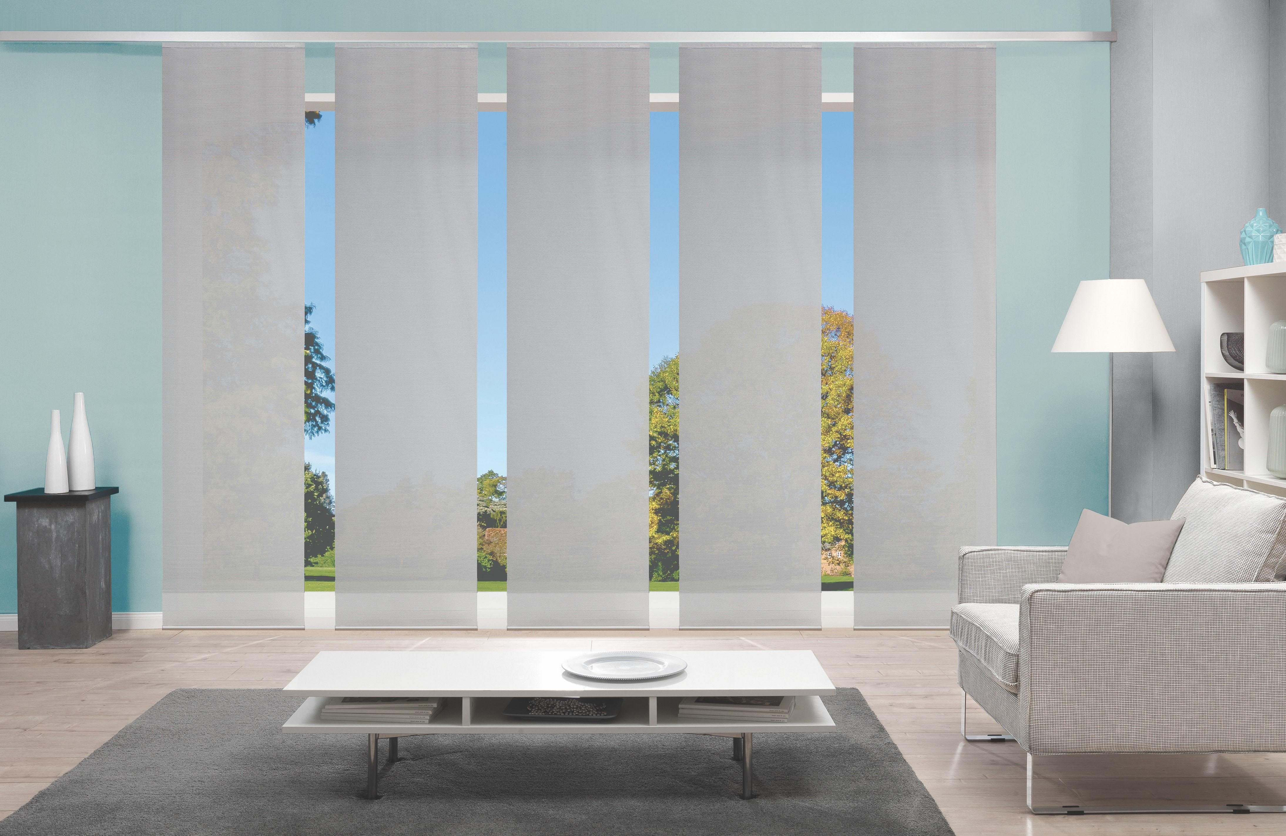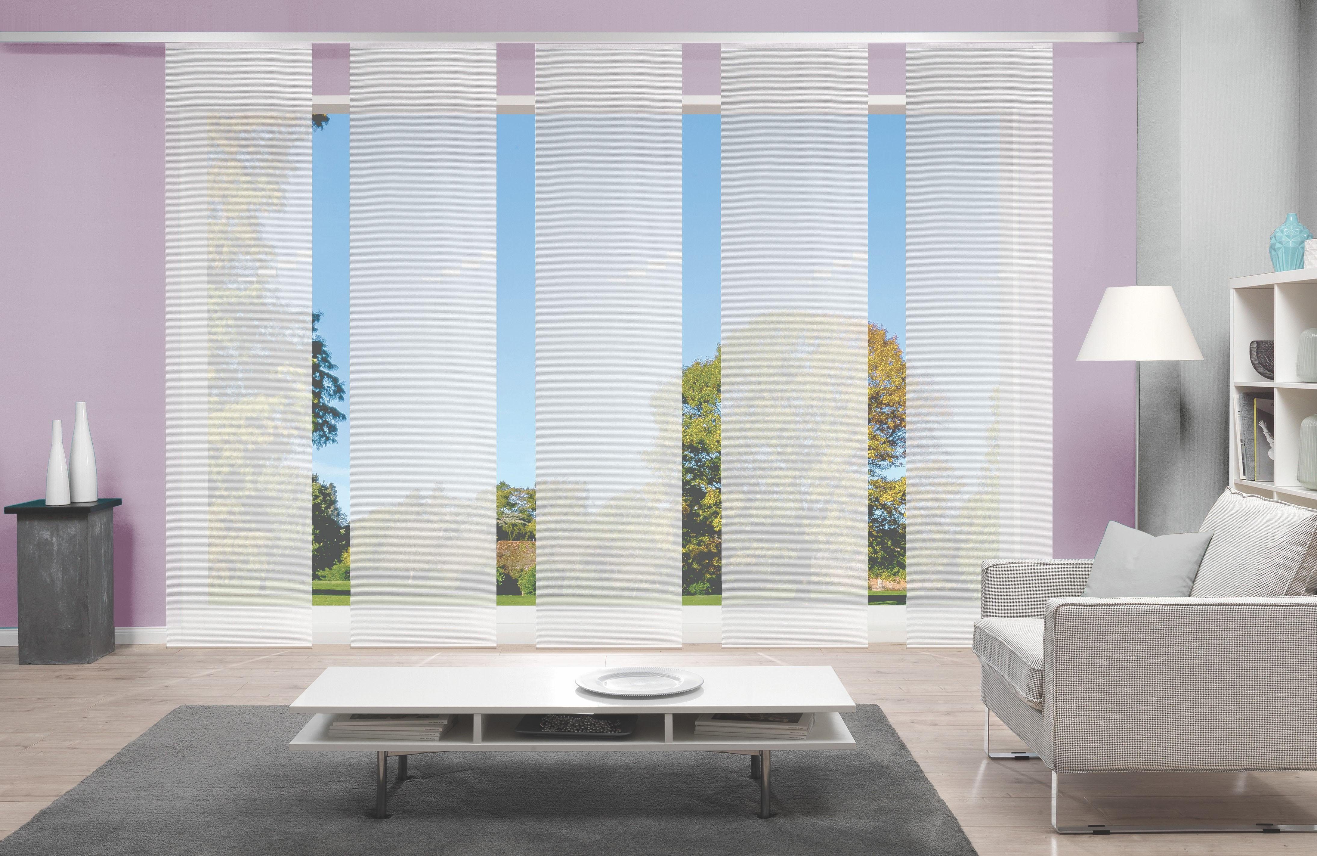 Hinweis Dekoration | Die angegebenen Maße sind die fertig dekorierten Maße. Eine Schiebegardine ist eine schmale, glatt hängende Stoffbahn, die sich sowohl als Sichtschutz als auch zur Raumteilung eignet. Durch die Schiebetechnik sind Schiebegardinen sehr flexibel einsetzbar. |