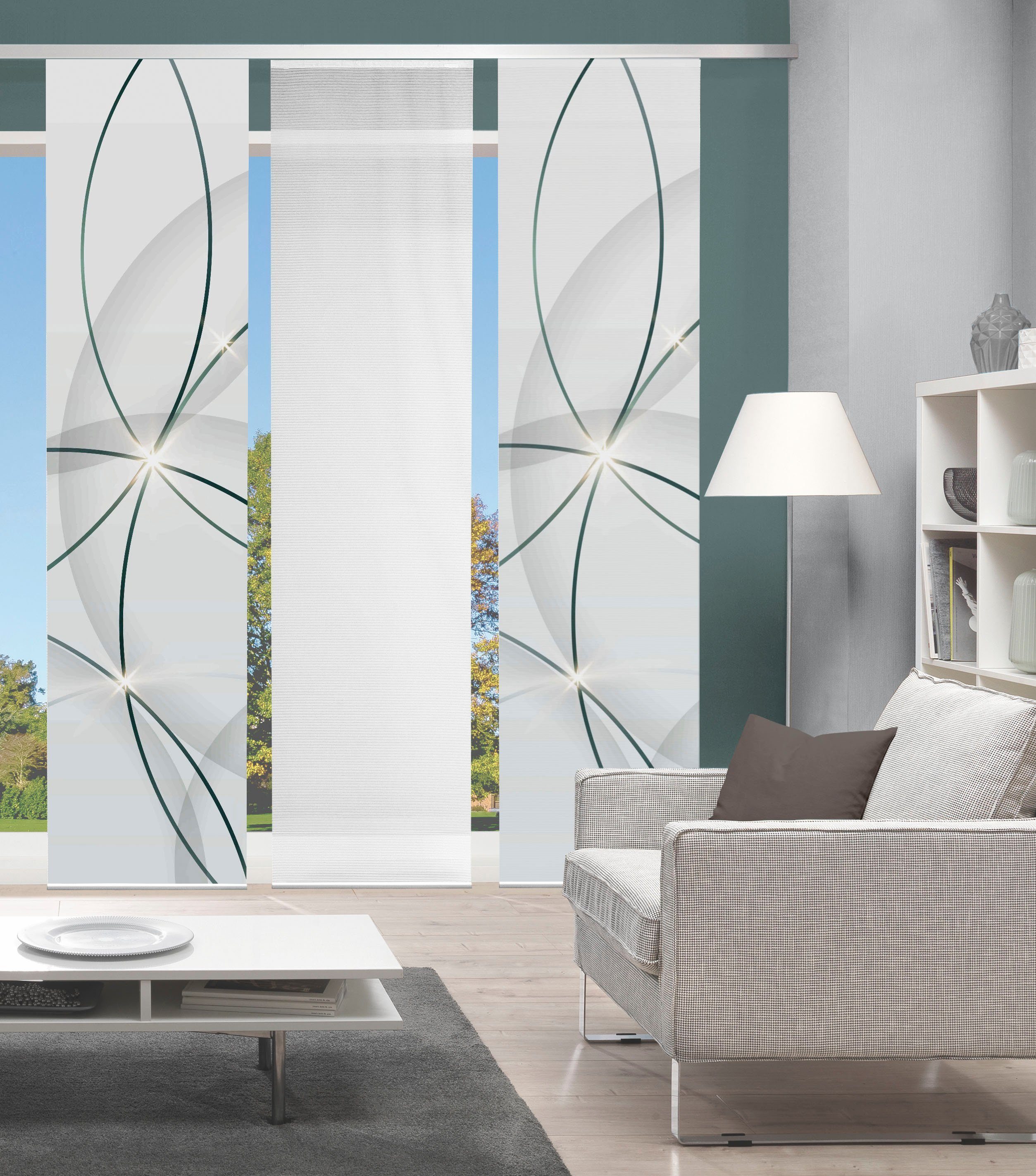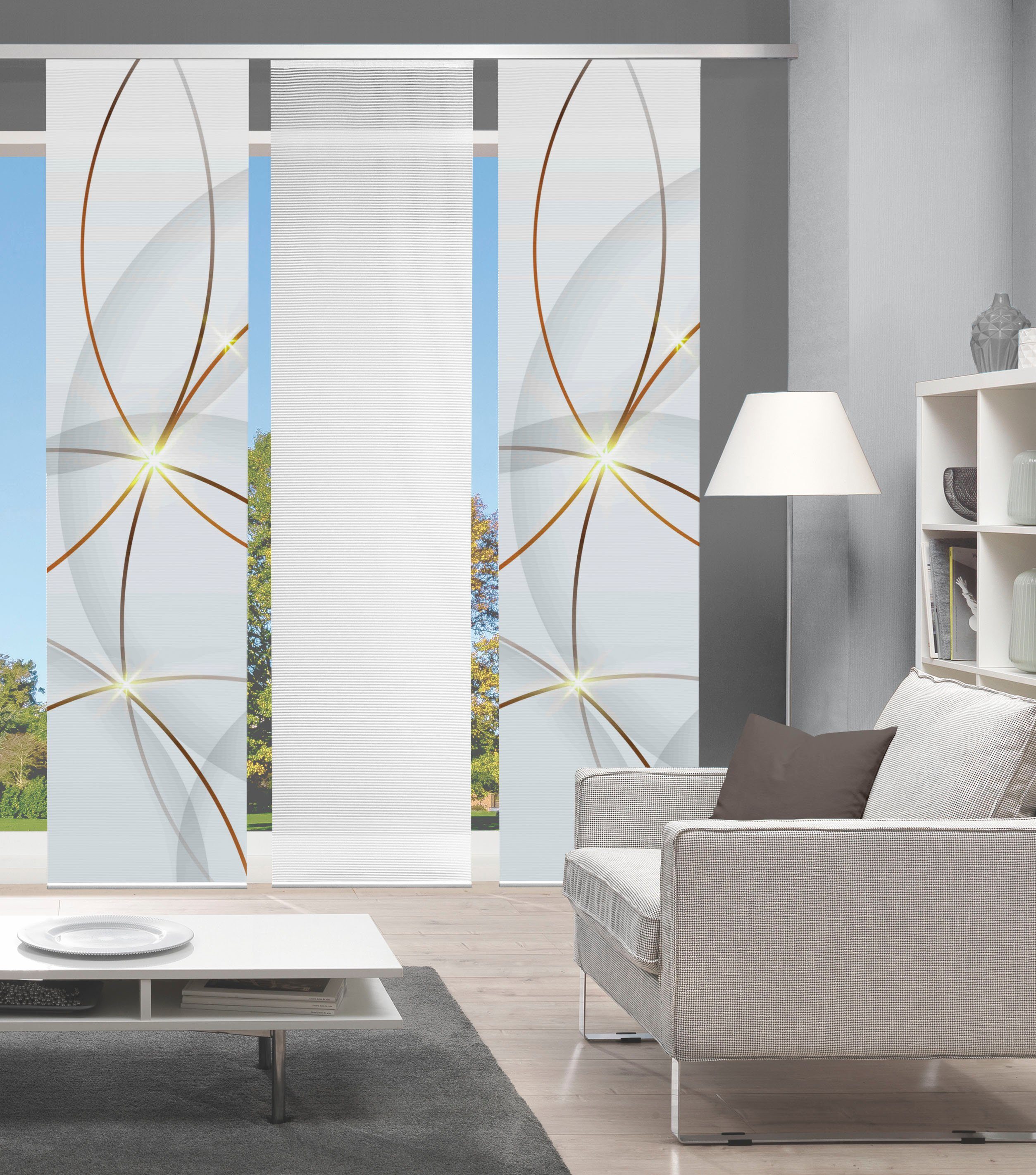 Hinweis Dekoration | Eine Schiebegardine ist eine schmale, glatt hängende Stoffbahn, die sich sowohl als Sichtschutz als auch zur Raumteilung eignet. Durch die Schiebetechnik sind Schiebegardinen sehr flexibel einsetzbar. |
