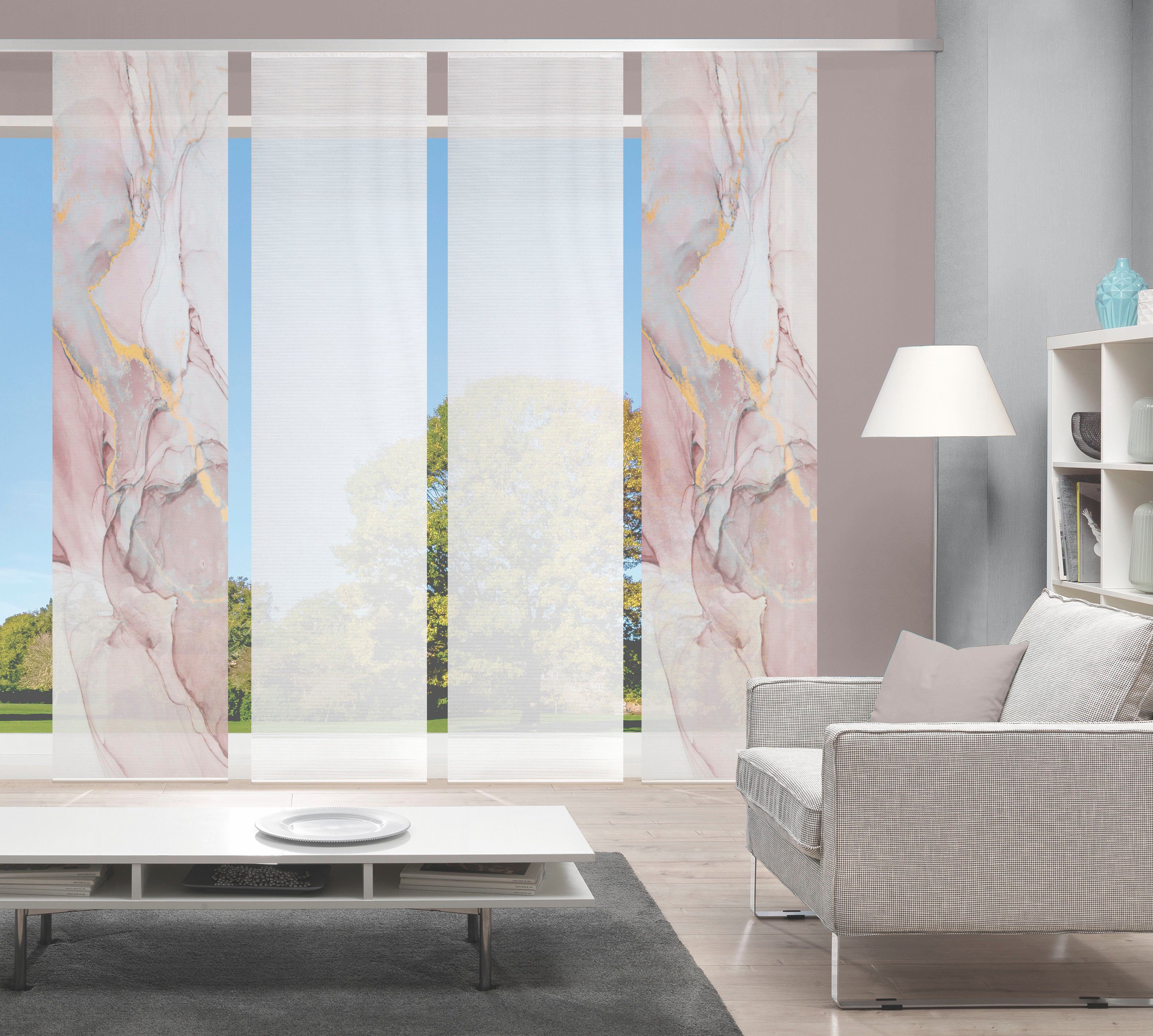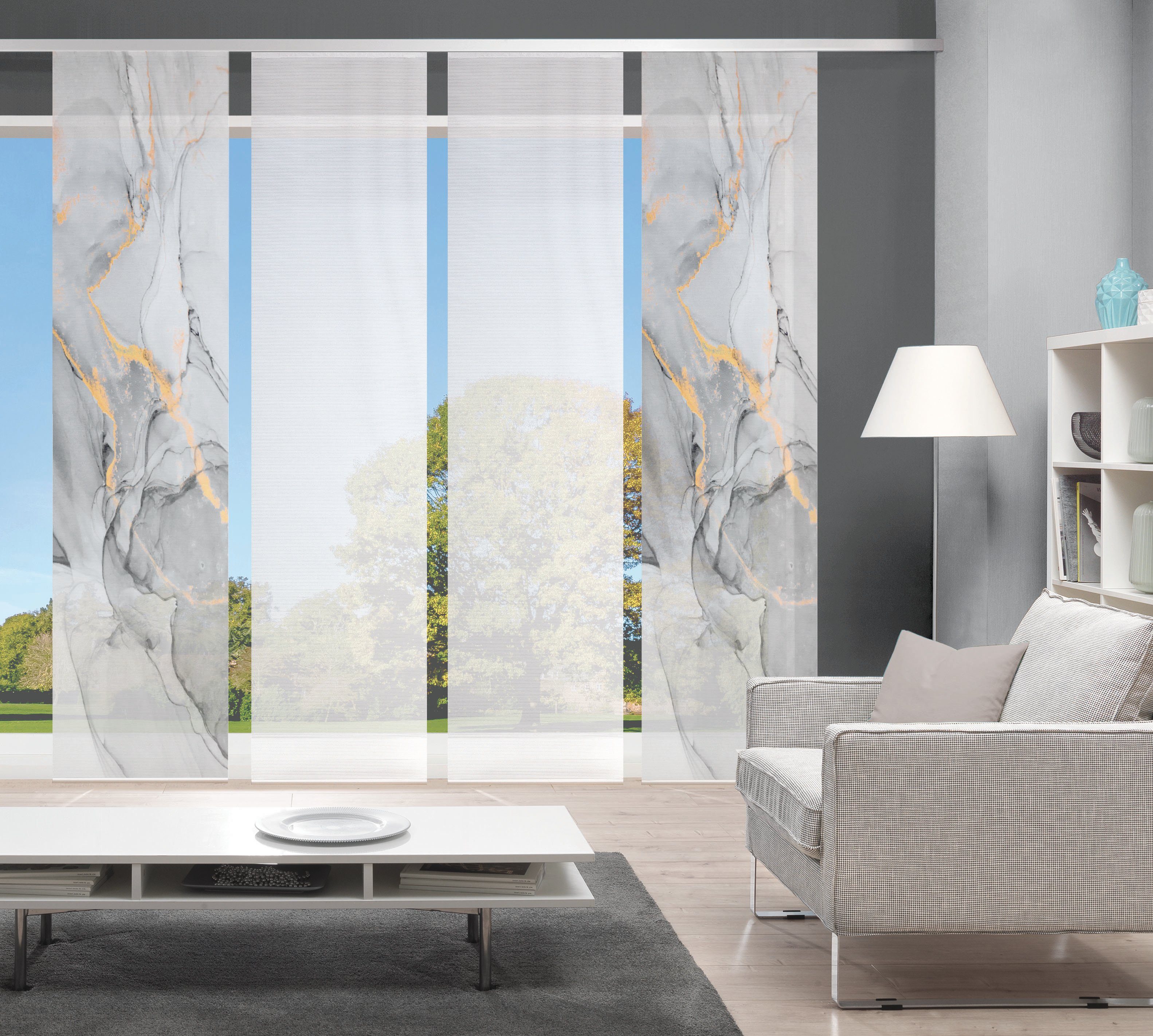 Hinweis Dekoration | Die angegebenen Maße sind die fertig dekorierten Maße. Eine Schiebegardine ist eine schmale, glatt hängende Stoffbahn, die sich sowohl als Sichtschutz als auch zur Raumteilung eignet. Durch die Schiebetechnik sind Schiebegardinen sehr flexibel einsetzbar. |