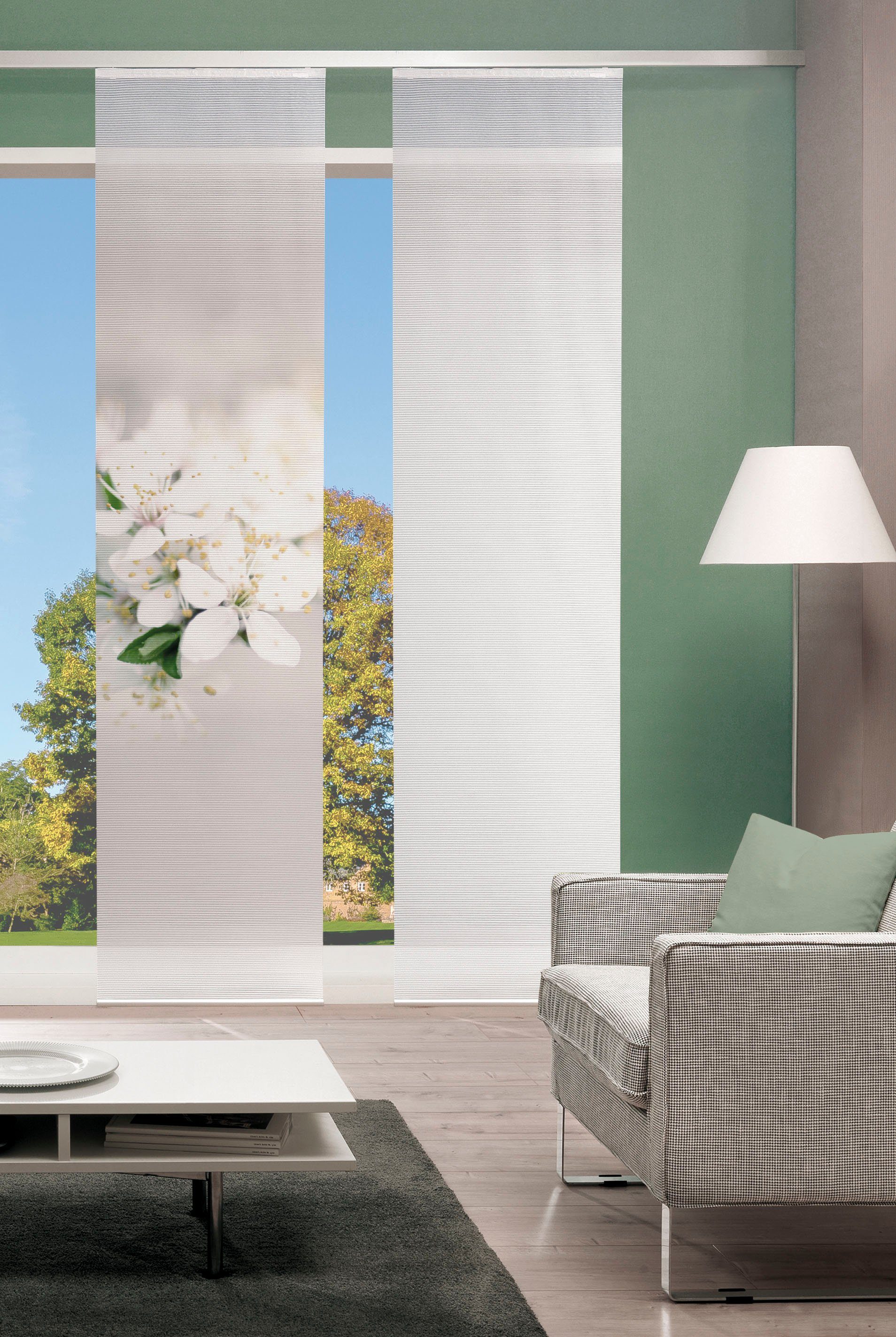Hinweis Dekoration | Die angegebenen Maße sind die fertig dekorierten Maße. Eine Schiebegardine ist eine schmale, glatt hängende Stoffbahn, die sich sowohl als Sichtschutz als auch zur Raumteilung eignet. Durch die Schiebetechnik sind Schiebegardinen sehr flexibel einsetzbar. |