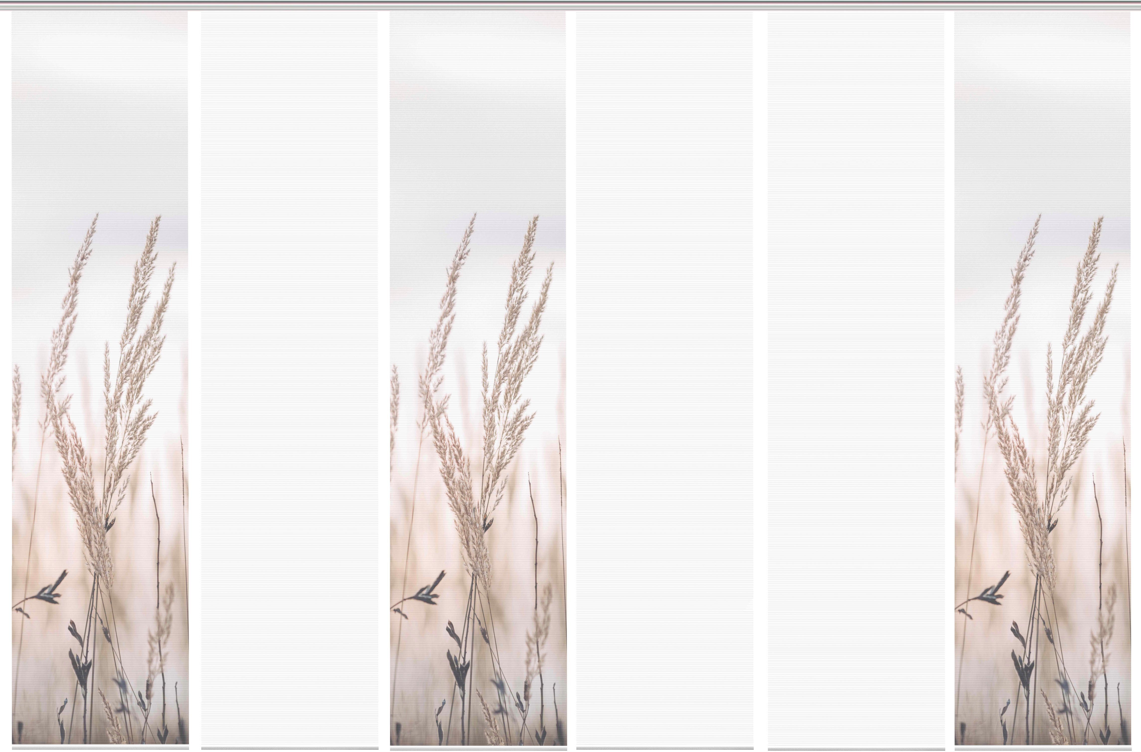 6ER SET DIGITALDRUCK BAMBUS-OPTIK bestehend aus 3 digitalbedruckten halbtransparenten Schiebevorhängen aus Bambus-Optik welche perfekt mit 3 halbtransparenten Uni Schiebevorhängen ROM in der Farbe WEISS aus Bambus-Optik kombiniert werden. Die Schiebevorhänge werden inkl. Zubehör geliefert - dieses beinhaltet oben als Befestigung einen Paneelwagen inkl. Gleitern (für alle gängigen Gardinenschienen - auch IKEA) sowie als Abschluss eine Aluminium-Klemmleiste zum einfachen Anklipsen. Jeder einzelne Schiebevorhang ist 260 cm hoch und kann nach Belieben gekürzt werden. Dazu einfach die Klemmleiste abclipsen, auf der entsprechenden Höhe gerade abschneiden und wieder Dranklemmen. 100% Polyester. Waschbar bei 30°C - Schonwaschgang - Zubehör dazu einfach abmachen - nicht im Trockner trocknen - keine chemische Reinigung möglich