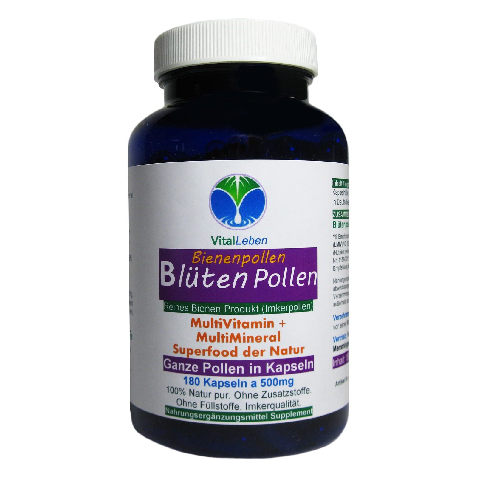 BLÜTENPOLLEN auch Bienenpollen oder Imkerpollen genannt, gelten als MultiVitamin + MultiMineral Superfood der Natur. Blütenpollen enthalten fast alle Vitalstoffe des täglichen Bedarfs wie z.B. mehrfach ungesättigte Fettsäuren, Aminosäuren (Arginin, L-Glutamin, Histidin, Lysin), Mineralien & Spurenelemente (Calcium, Kalium, Magnesium, Eisen, Silicium, Mangan, Schwefel, Selen), Enzyme, Faserstoffe, Antioxidantien, Ballaststoffe und Vitamine (C, E, D, K, B1, B2, B3, B5, B6, B12, Biotin, Folsäure). INFO TIPP: Für dieses Produkt werden NUR die REINEN Pollen verwendet und KEINE Zusatzstoffe, Füllstoffe oder chemisch hochdosierten Extrakte. GARANTIE: Inhalt 100 % NATUR Pur - KEINE Presslinge oder TABLETTEN. Hergestellt und abgefüllt in Deutschland.