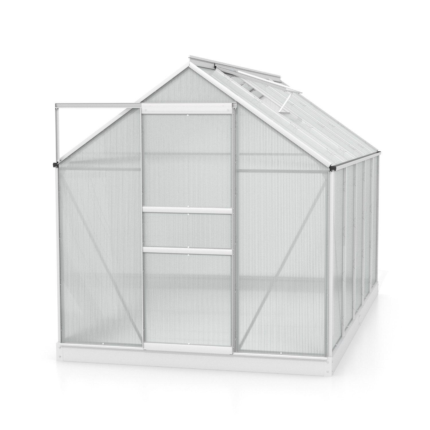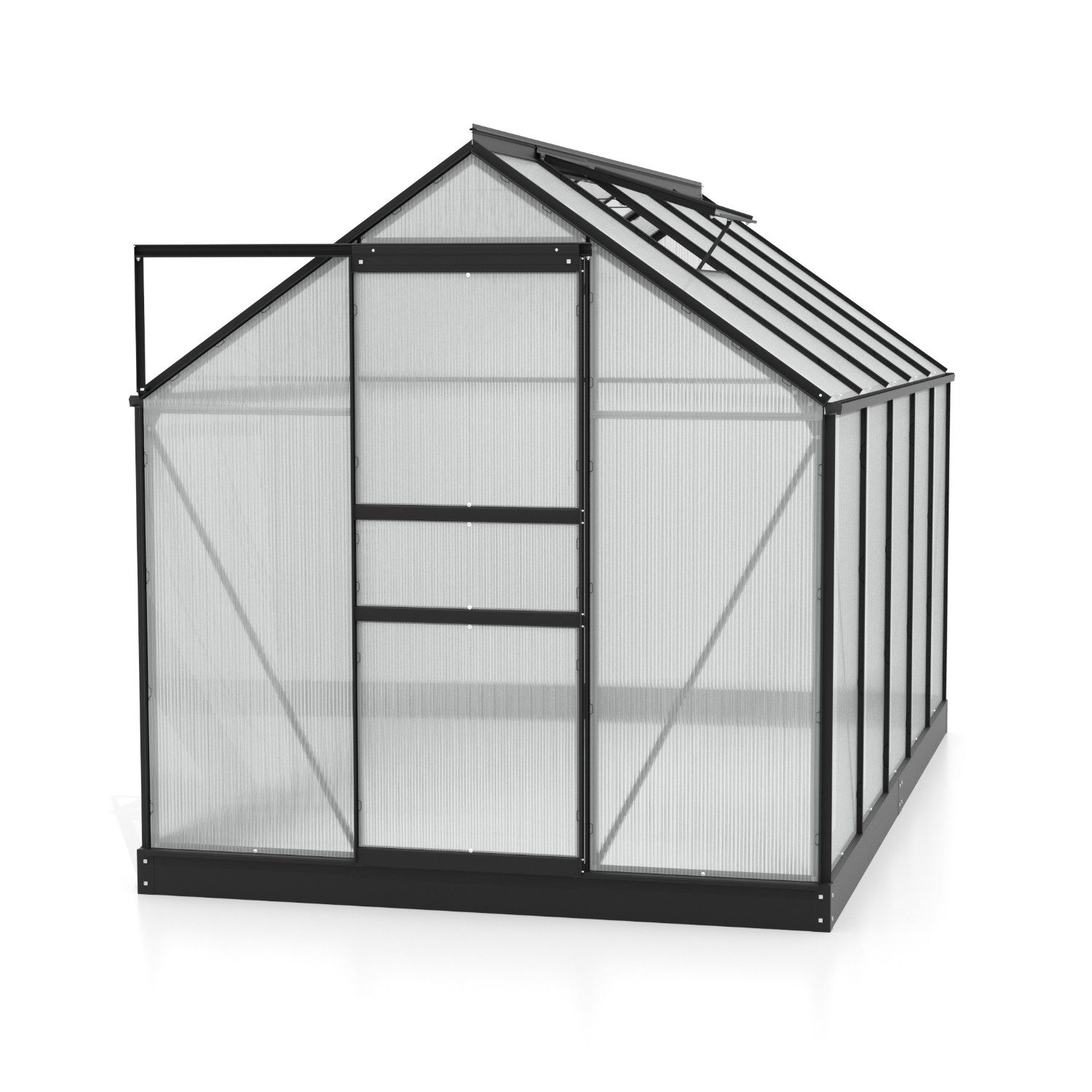 Das Gewächshaus "Planet" eröffnet Einsteigern und Genussgärtnern tolle Gestaltungsmöglichkeiten. So können sie bei der Verglasung zwischen 6 mm starken, UV-stabilisierten Hohlkammerplatten (HKP) und schönem, kristallklaren Sicherheitsglas (ESG) wählen. Mit Hohlkammerplatten schützen Sie ihre Pflanzen ideal vor Temperatureinbrüche, wie zu Saisonbeginn und -ende oder nachts auftreten. Zudem brechen Hohlkammerplatten das Sonnenlicht und schützen Ihre Pflanzen also zusätzlich auch noch vor zu intensiver Sonneneinstrahlung. Im Vergleich zu Glas sind Hohlkammerplatten bruchsicher und zudem leichter. In der Варианты mit Einscheibensicherheitsglas hingegen fügt sich das Planet lautlos in den Garten ein und lässt den Blick sowohl ins Gewächshaus hinein, als auch aus dem Haus heraus frei. Befestigt werden die Scheiben mittels der bewährten Federklammertechnik. Die leichtgängige, kugelgelagerte Schiebetür gewährt nicht nur den Zutritt ins eigene Grün, sondern sorgt zusammen mit dem aufstellbaren Dachfenster auch für optimale Belüftung. Die Tür können Sie mittels Vorhängeschloss abschließen. Auch Regenrinnen gehören zur Standardausstattung und ermöglichen mit Hilfe der als Zubehör erhältlichen Fallrohre das Sammeln von Regenwasser für die Bewässerung der Pflanzen. Für den ebenerdigen und rechtwinkligen Aufbau des Gewächshauses ist der in diesem Set enthaltene Fundamentrahmen (H 12,5 cm, inklusive der Streben zur Verankerung im Boden) aus verzinktem und farbbeschichtetem Stahlblech besonders hilfreich. Für die Glasvariante empfiehlt der Hersteller darüber hinaus die Abschattierung des Daches. Produktdetails: ideales Einsteigermodell attraktives Design einfach zu montieren äußerst robust und langlebig mit Hohlkammerplatten oder Sicherheitsglas Gewächshaus ist mit einer Schiebetür ausgestattet Tür vorbereitet für Vorhängeschloss Set inklusive passendem Fundamentrahmen