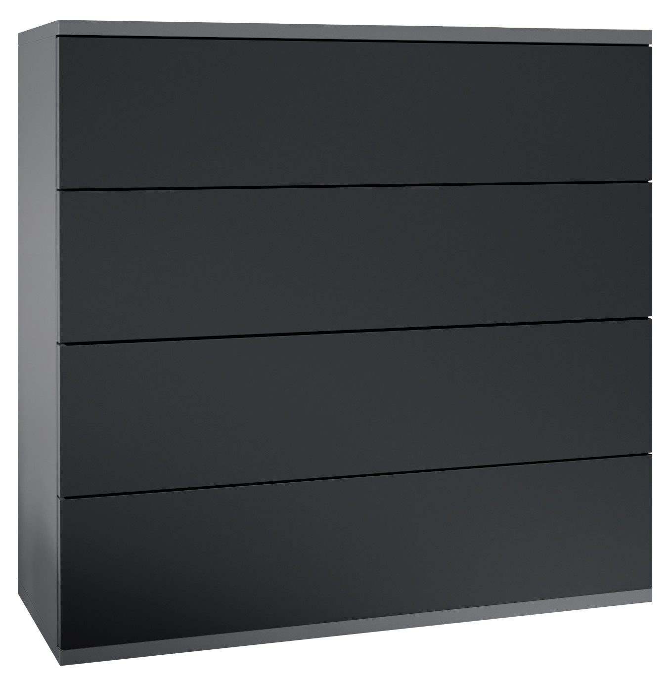 Ob als modernes Sideboard im Wohnzimmer, Kommodenschrank für's Schlafzimmer, Anrichte im Flur oder als Kommode im Kinderzimmer - die geräumige und schwebende Kommode Pavos V3 präsentiert sich als praktisches Möbelstück mit modernem Design, hergestellt in Deutschland. Der Beistellschrank verfügt über vier leichtgängige Schubladen, die sich dank des innovativen Push-to-Open-Systems mühelos durch einen einfachen Druck öffnen lassen. Die Schubladen gleiten nahezu geräuschlos auf stabilen Metallschienen, was eine besonders komfortable Nutzung gewährleistet. Eine Rückwand in Holzoptik aus Hartfaserplatten ist im Lieferumfang enthalten.