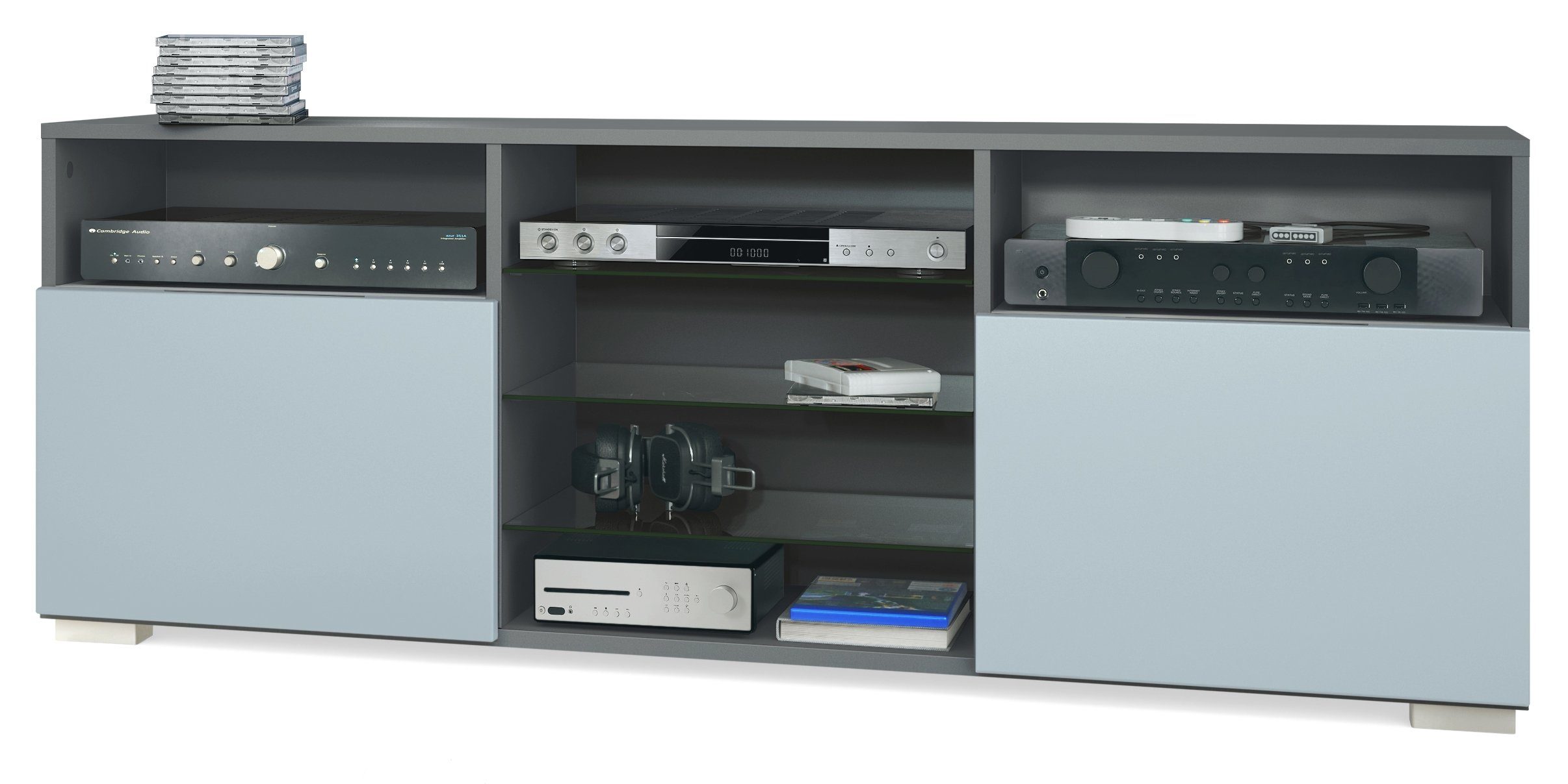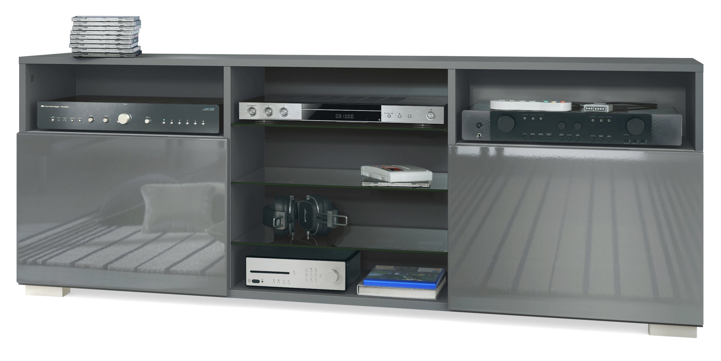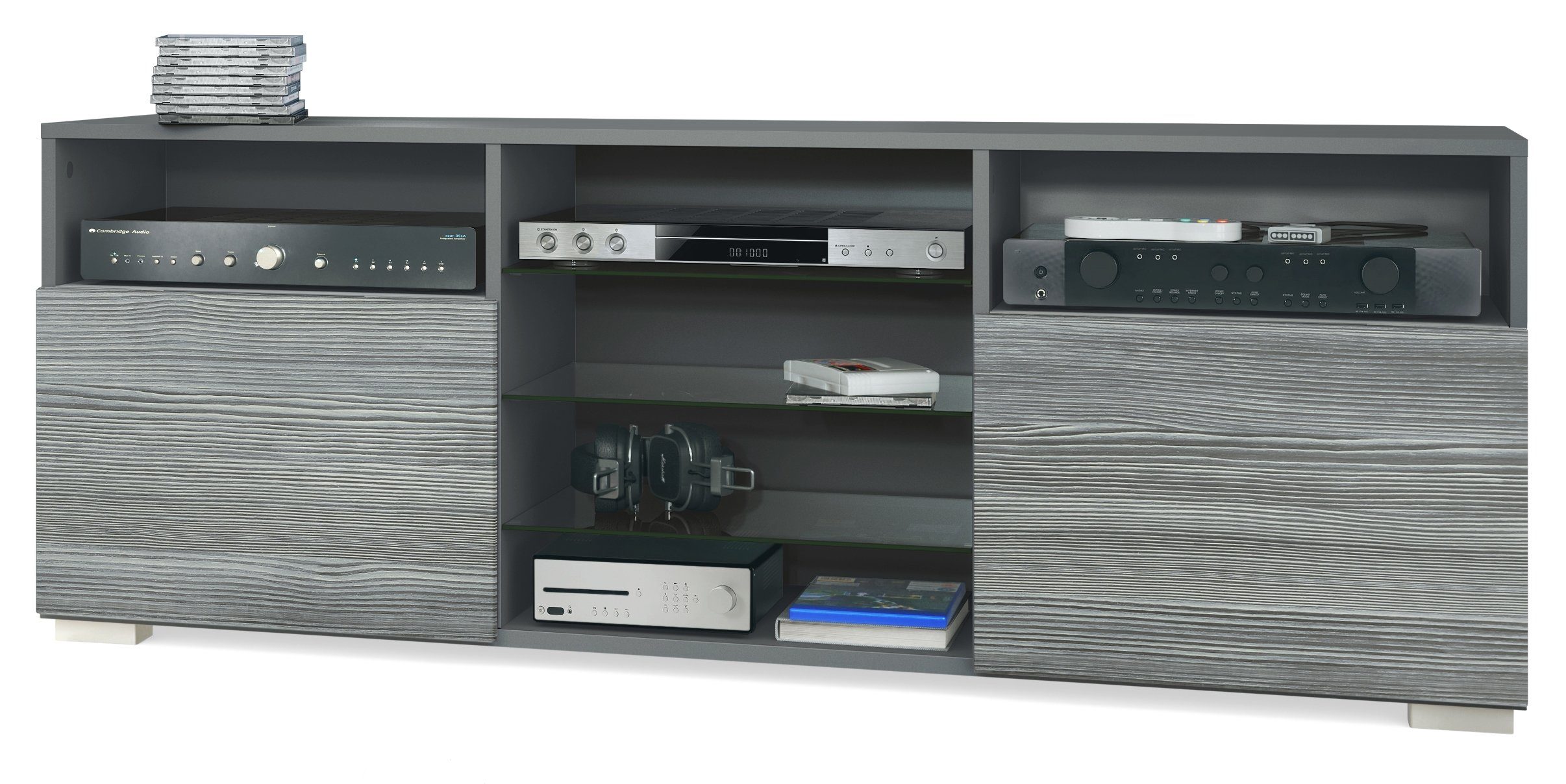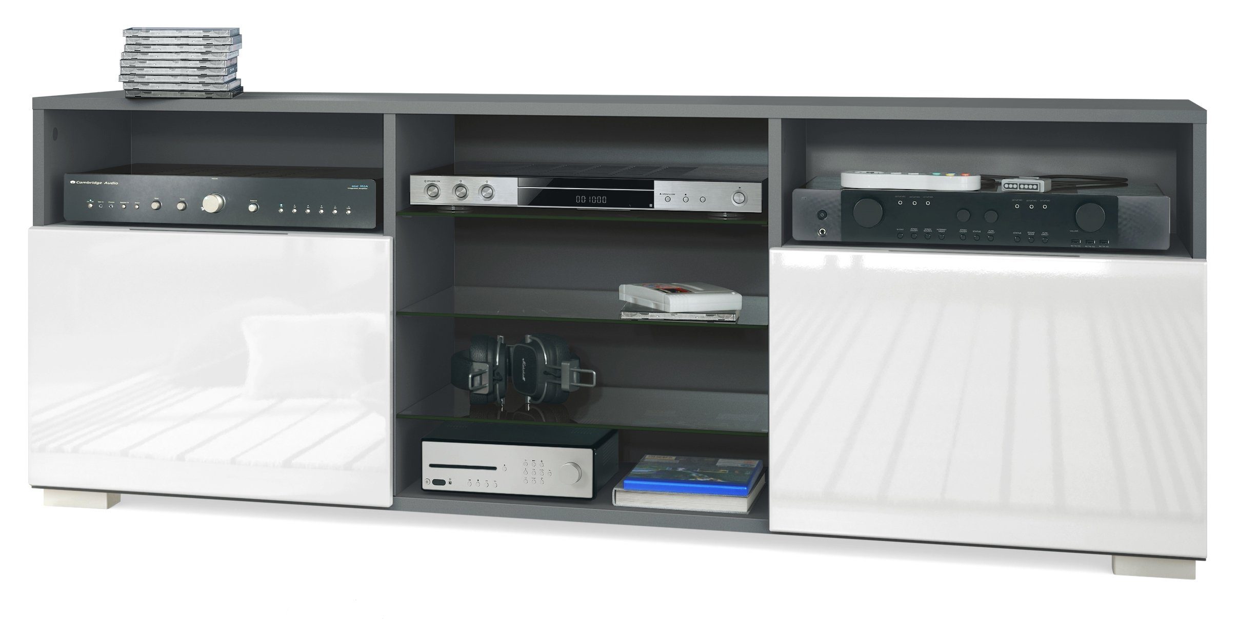 Entdecken Sie das elegante Granada TV-Board in der stilvollen Korpusfarbe Anthrazit matt. Mit seinen vielseitigen Eigenschaften bietet es nicht nur eine moderne und ansprechende Optik, sondern auch reichlich Stauraum für Ihre Unterhaltungselektronik und Wohnaccessoires.