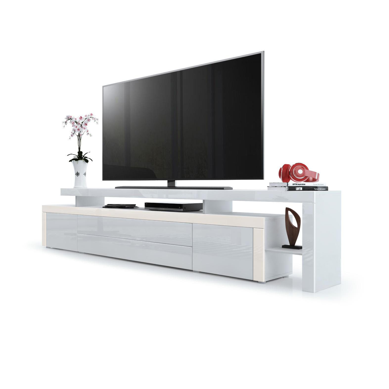 Das TV Board Leon ist ein absoluter Hingucker für Ihr Wohnzimmer. Es besteht aus zwei Türen, zwei Schubkästen und einem modernen Überbau mit offenen Fächern. Hinter den Türen befindet sich reichlich Stauraum für z.B. DVDs oder Bücher. Die Schubkästen, die sich mittig befinden, bieten zusätzlichen Platz für kleinere Dinge. Die offenen Fächer unter dem Überbau eignen sich hervorragend für Ihren Receiver oder Spielekonsolen.
