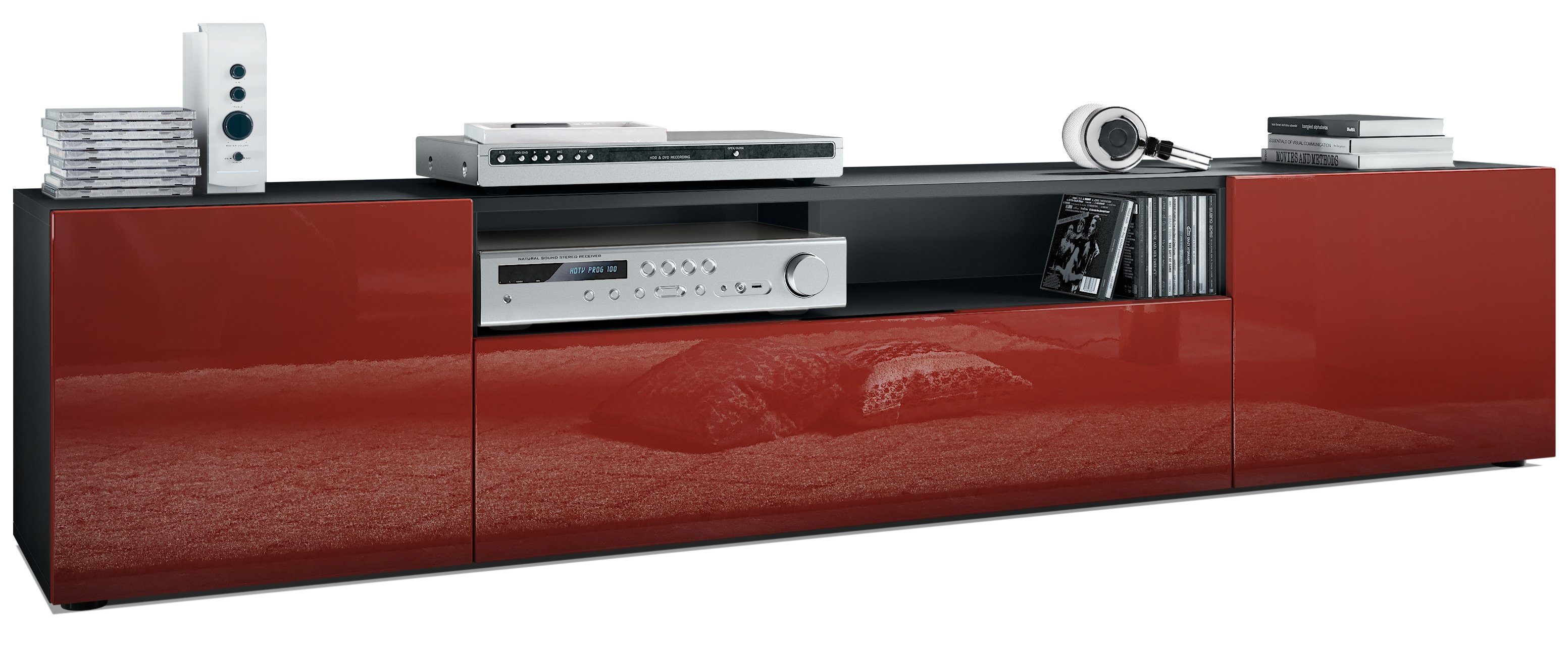 Durch das schlichte, moderne Design lässt sich das TV-Board mit vielen verschiedenen Einrichtungsstilen kombinieren und sowohl als Sideboard für den TV im Wohnzimmer oder TV-Schrank im Schlafzimmer einsetzen. Für eine besondere Eleganz sorgen die Fronten des Lowboards, erhältlich in vielen verschiedenen Farbvarianten, die Ihnen eine Vielzahl an Kombinationsmöglichkeiten bieten. Durch die Oberflächenbeschichtung erhalten Sie ein besonders pflegeleichtes Produkt. Für die Reinigung können Sie auf Chemie verzichten - es reicht ein leicht angefeuchtetes Tuch, um die wasserfeste Oberfläche angemessen zu reinigen.