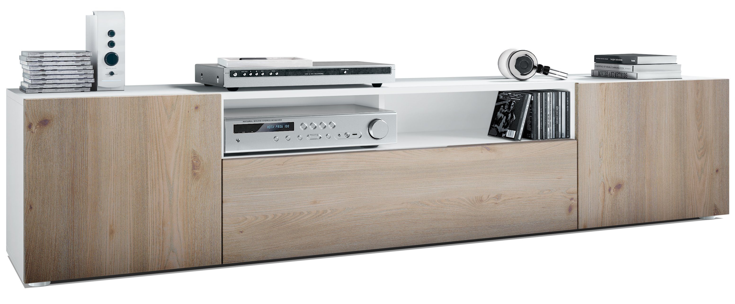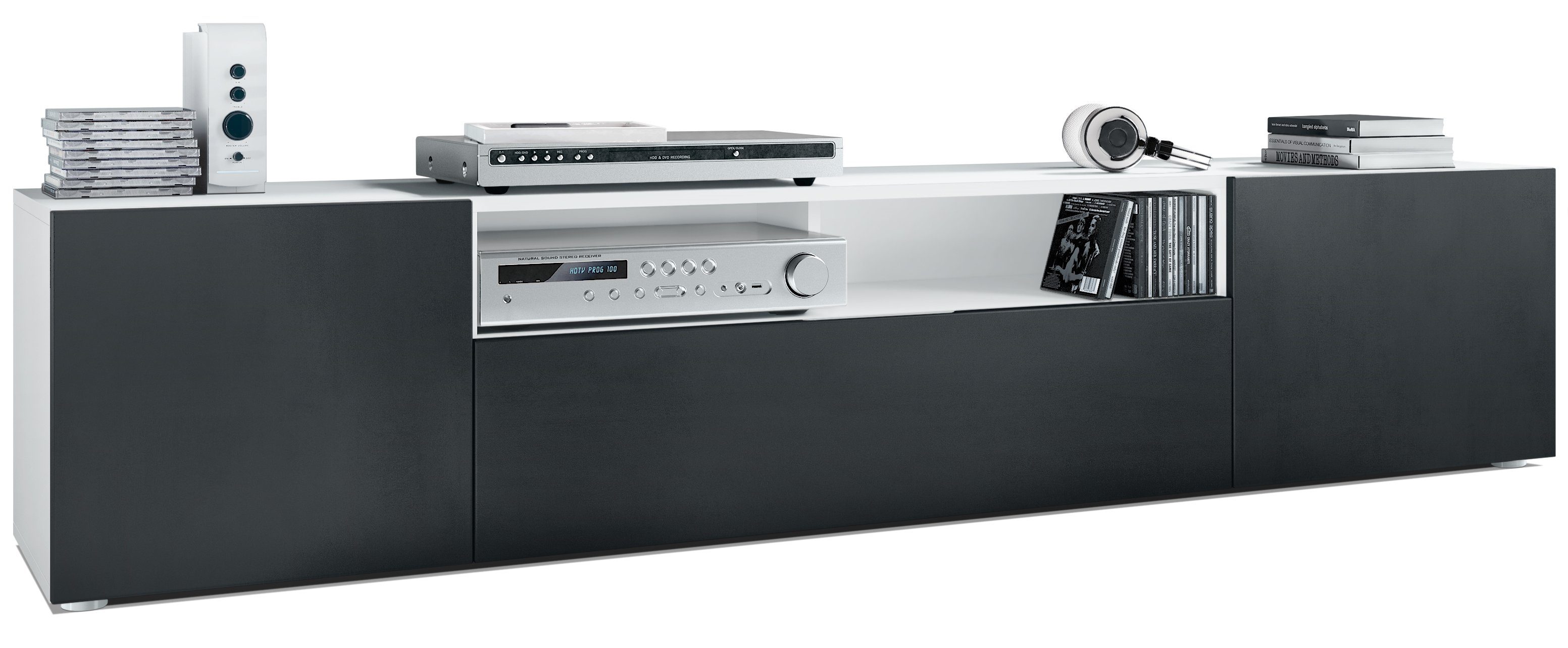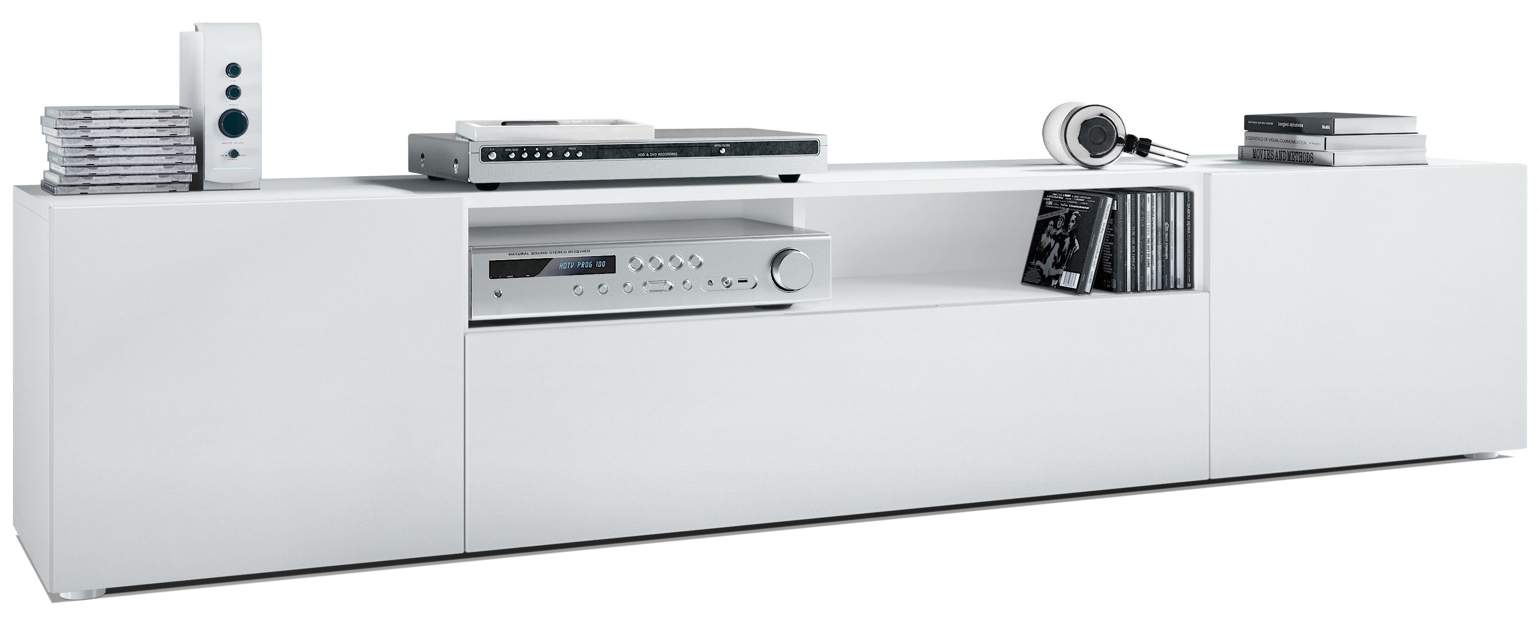 Durch das schlichte, moderne Design lässt sich das TV-Board mit vielen verschiedenen Einrichtungsstilen kombinieren und sowohl als Sideboard für den TV im Wohnzimmer oder TV-Schrank im Schlafzimmer einsetzen. Für eine besondere Eleganz sorgen die Fronten des Lowboards, erhältlich in vielen verschiedenen Farbvarianten, die Ihnen eine Vielzahl an Kombinationsmöglichkeiten bieten. Durch die Oberflächenbeschichtung erhalten Sie ein besonders pflegeleichtes Produkt. Für die Reinigung können Sie auf Chemie verzichten - es reicht ein leicht angefeuchtetes Tuch, um die wasserfeste Oberfläche angemessen zu reinigen.