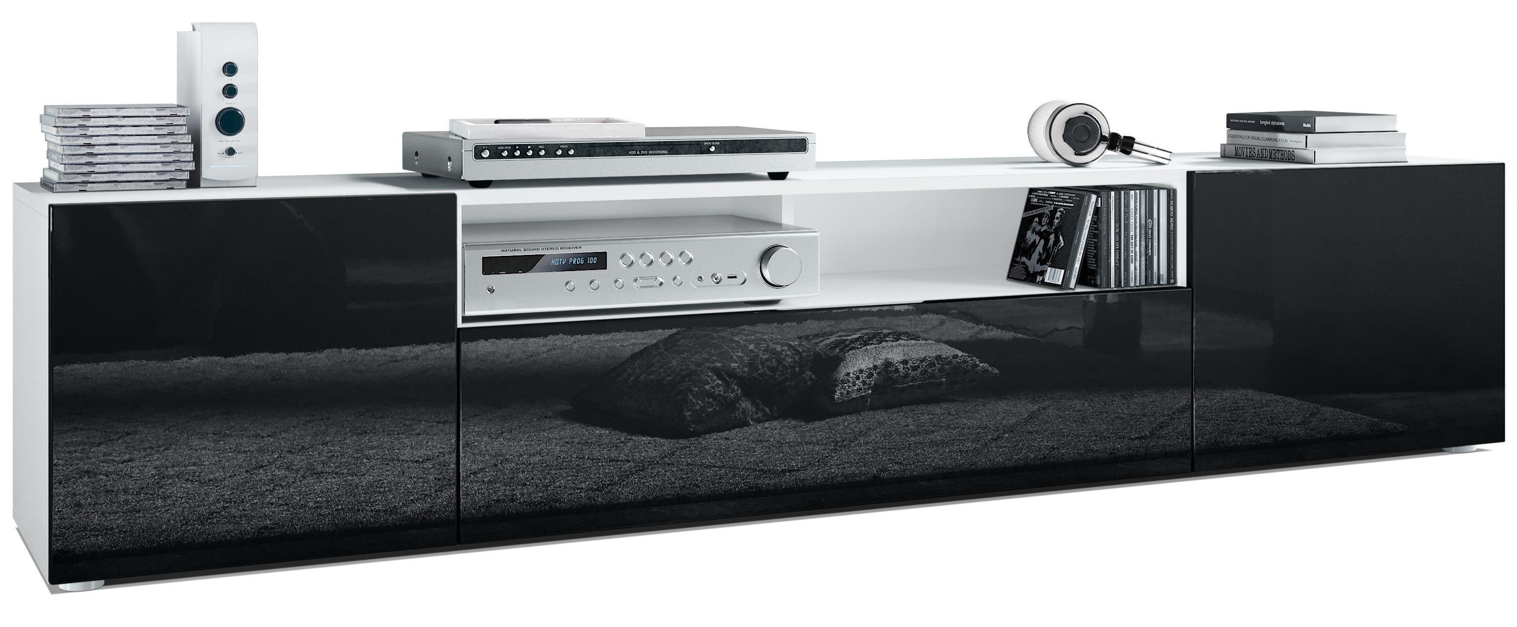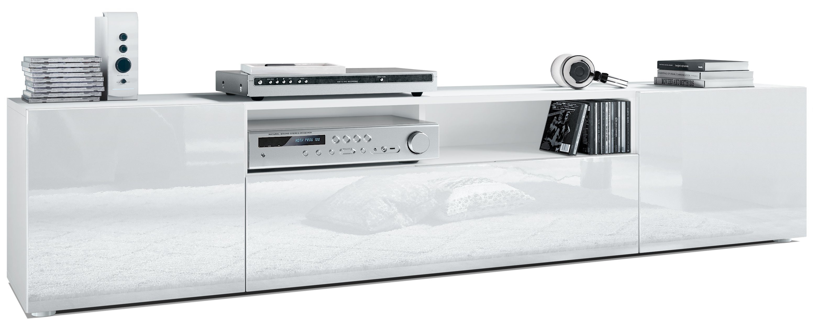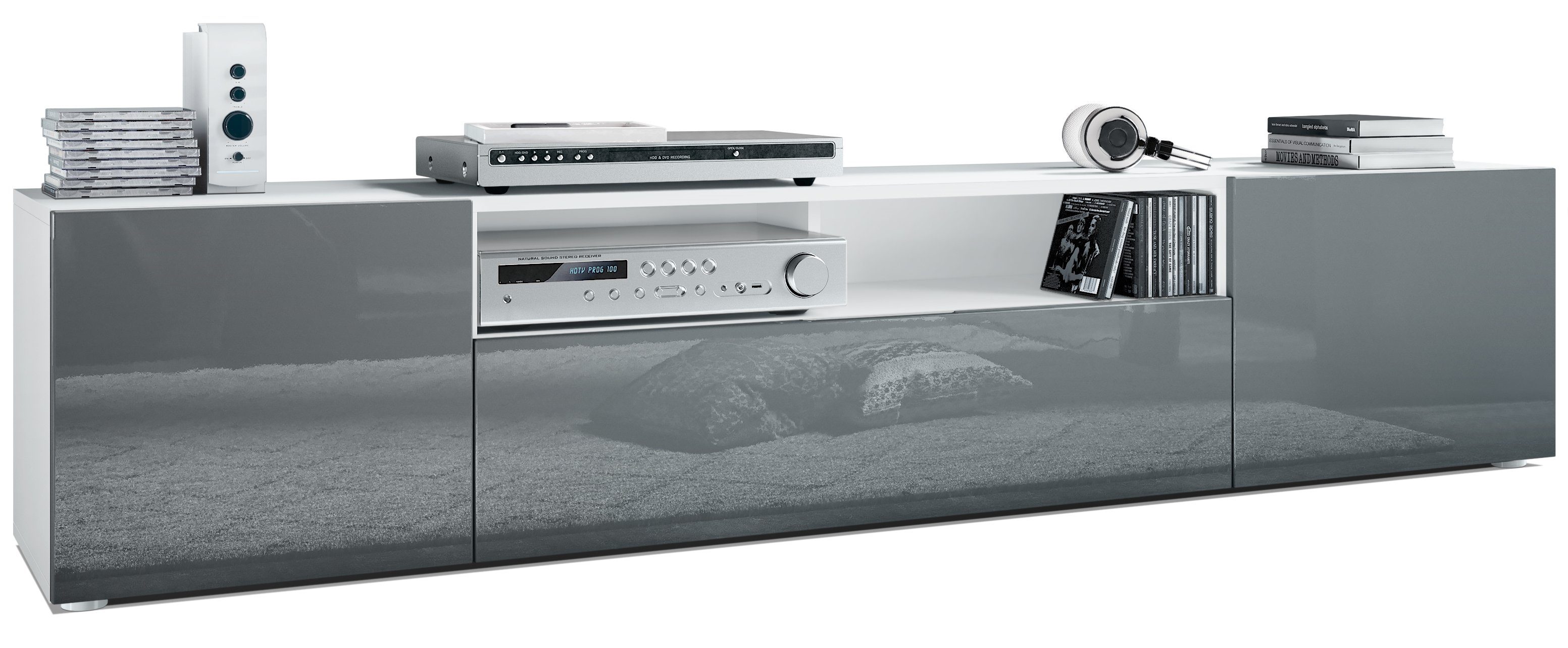 Durch das schlichte, moderne Design lässt sich das TV-Board mit vielen verschiedenen Einrichtungsstilen kombinieren und sowohl als Sideboard für den TV im Wohnzimmer oder TV-Schrank im Schlafzimmer einsetzen. Für eine besondere Eleganz sorgen die Fronten des Lowboards, erhältlich in vielen verschiedenen Farbvarianten, die Ihnen eine Vielzahl an Kombinationsmöglichkeiten bieten. Durch die Oberflächenbeschichtung erhalten Sie ein besonders pflegeleichtes Produkt. Für die Reinigung können Sie auf Chemie verzichten - es reicht ein leicht angefeuchtetes Tuch, um die wasserfeste Oberfläche angemessen zu reinigen.
