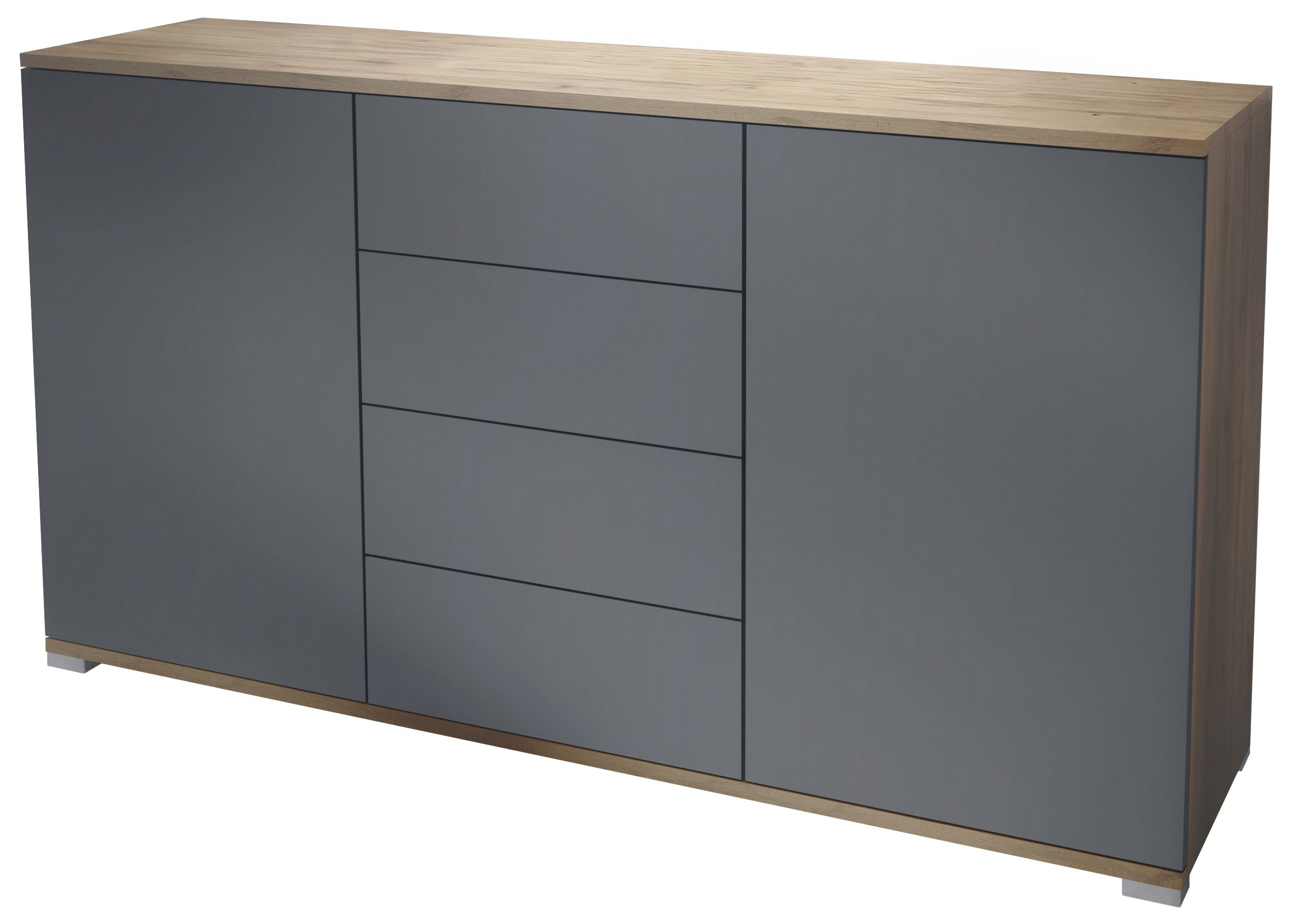 Der Korpus des Sideboards ist in Eiche Evoke gehalten. Wählen Sie die passende Frontfarbe für Ihren Wohnstil: natürliche Holz Optik oder moderne matte Farben.