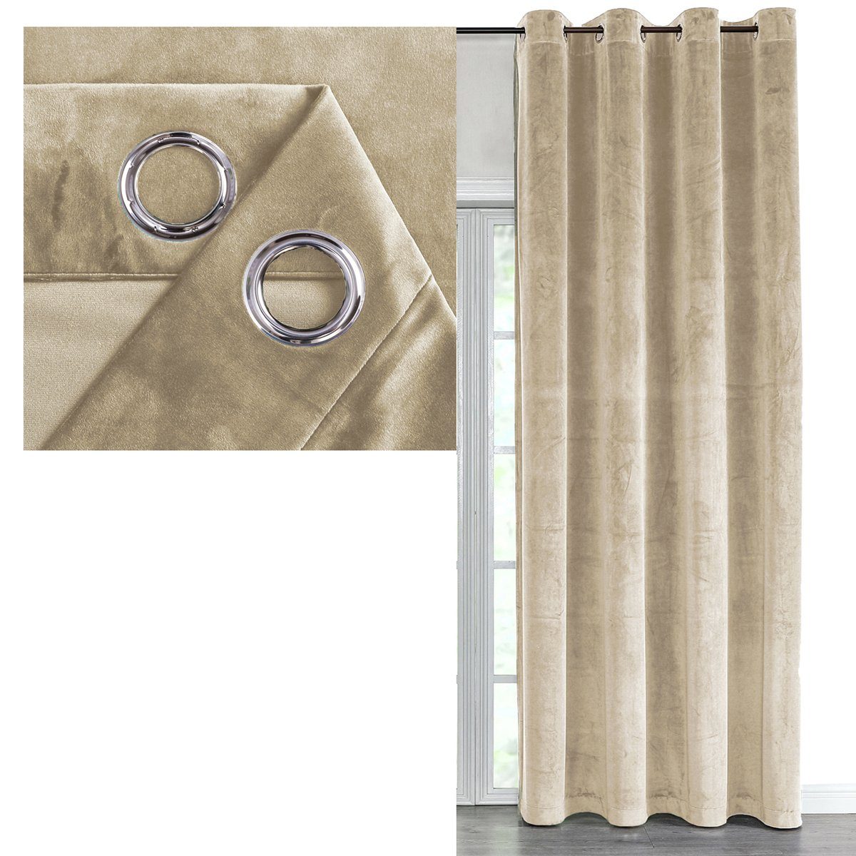 Gewebe: Weiches Samt Gewebe mit lebendiger Optik Vorderseite: Samt Gewebe Rückseiete: Glattes Gewebe, Farbgleich zur Vorderseite Schöner Fall: Ideales Gewicht für die Gardinenstange Verdunkelung: Dunkelt den Raum deutlich ab (je dunkler die Farbe, desto höher die Verdunkelung). Packungsinhalt: 1 Stück Material: 100% Polyester Pflege: 30° Feinwäsche Maße: circa Maße, können leicht abweichen. Ösen 140cm Breite: 8 Stück Ösen, mit einem Innendurchmesser von 4 cm. Ösen 300cm Breite: 16 Stück Ösen, mit einem Innendurchmesser von 4 cm. Größen: Breite / Höhe (z.B.140cm Breite / 225cm Höhe)