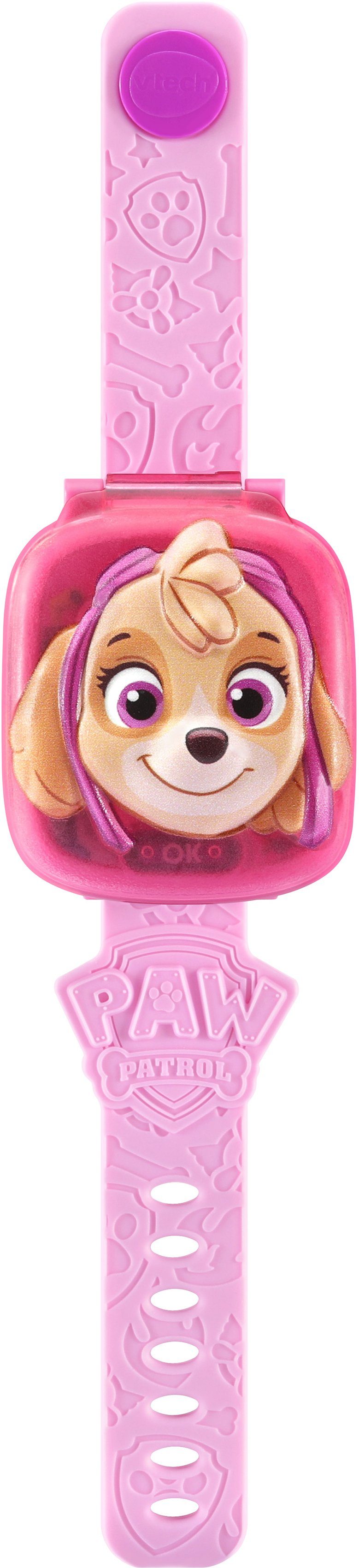 Funktionen | 12 PAW Patrol Ziffernblätter 3D-Cover mit dem Gesicht von Skye Abschaltautomatik Bei geschlossenem Deckel und Drücken der Ok-Taste ertönt ein PAW Patrol Spruch Kindersicheres Batteriefach Kuckucksuhrfunktion (ertönt zu jeder vollen Stunde) Lerninhalte Problemlösen, Zuordnen, Tiere, Einfache Adition & Subtraktion Menüführung über Tasten an der Seite Stoppuhr Timer Wecker mit 3 möglichen Wecktönen |