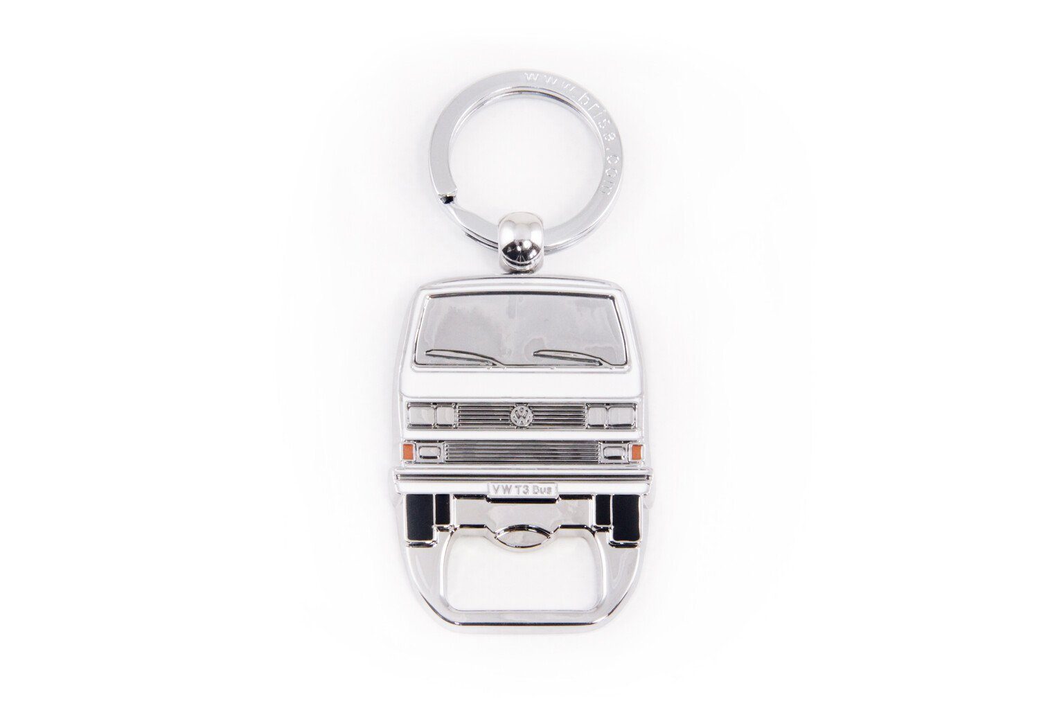 Die einmaligen Schlüsselanhänger mit Flaschenöffner für Kronkorken zeigen die Frontansicht des T3 Bulli Bus Models. Am Schlüsselring geht kein Schlüssel mehr verloren! Bei diesem Anblick kommt sofort ein Nostalgiegefühl der 50er, 60er und 70er Jahre - Freiheit, Fernweh und Lebenslust auf. Als größter Lizenznehmer Volkswagens ist es stets unser Anliegen, den höchsten Qualitätsanspruch zu wahren. Wir bieten diese praktischen Schlüsselanhänger mit Flaschenöffner ebenso im T4 und im T5 Bulli Bus an. Hier findet JEDER seinen Style! Perfekt für VW Fahrer und Fans auf Reisen!
